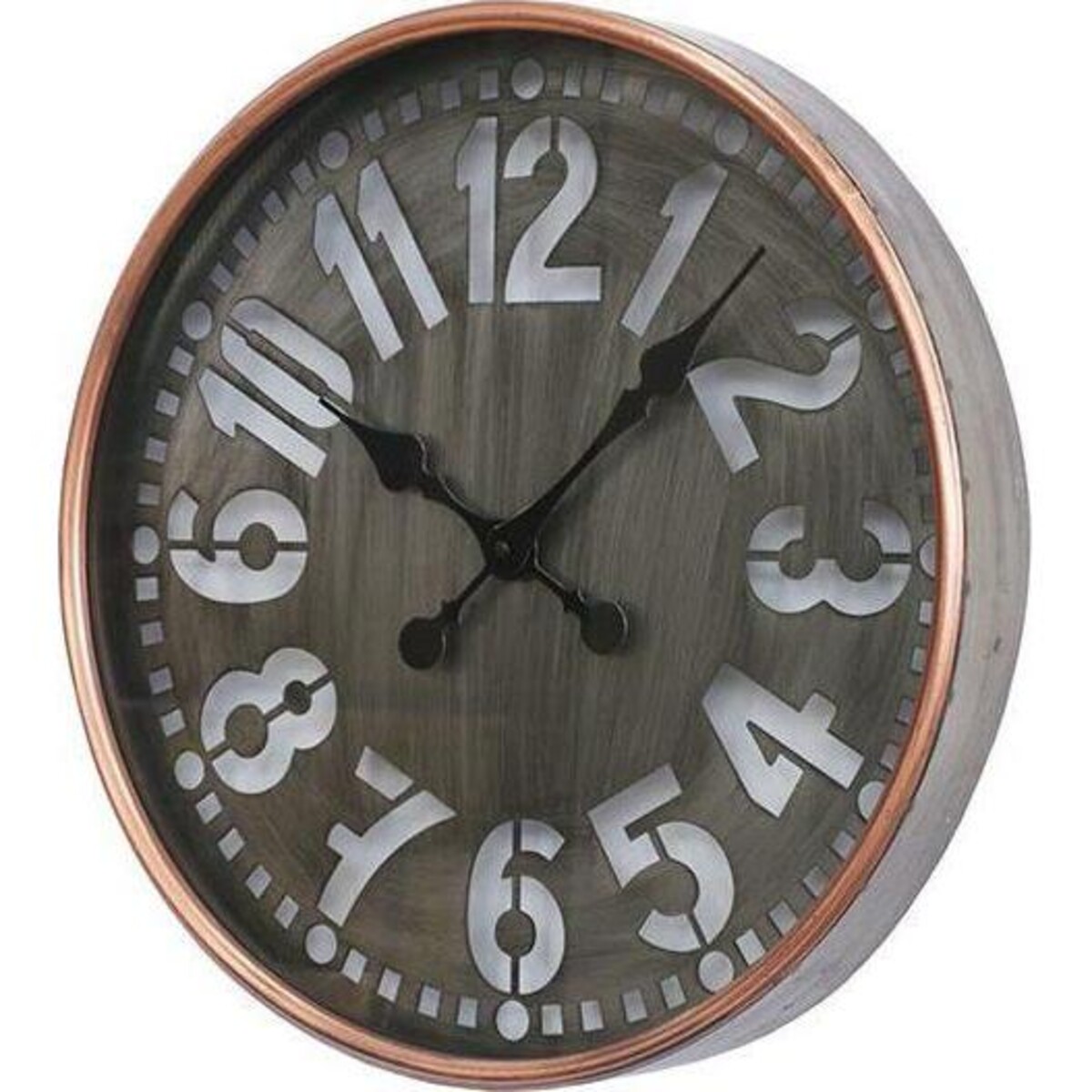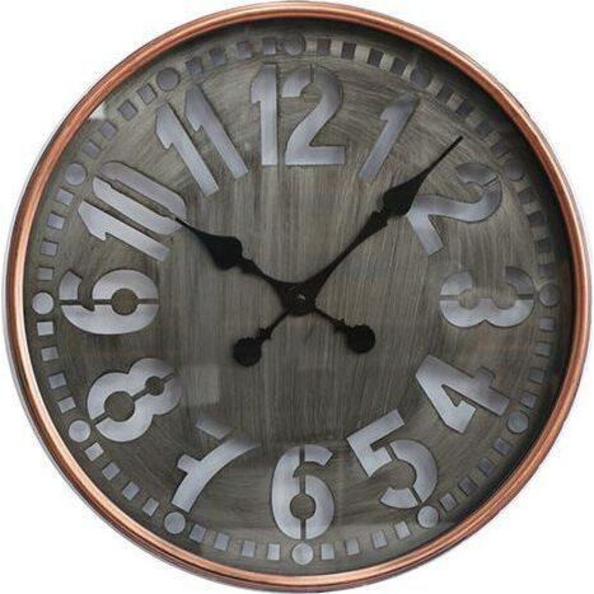 Here is a wonderfully designed clock from Lavida that combines the design aesthetics that makes offerings from this brand a true marvel. The 51 cm diameter round clock has a lovely grey face that looks like it has been hewed from grey coloured granite. The texturing that has been given to the grey coloured metal face is a marvelous colour - deep hued and very attractive. The round rim that surrounds the clock completely, however is in lighter copper shade making the contrasts all the more vivid. The numbers are in simple digits and the clock presents a lovely modern feel to it albeit the hands are a far more antiquated style. The placement of this clock could be in any part of your home or office space as it will fit in gracefully into any such space. Add it to walls that need that point of interest that can be easily created with a clock. The clock of course comes with the right kind of technology to make it a perfect time keeper.