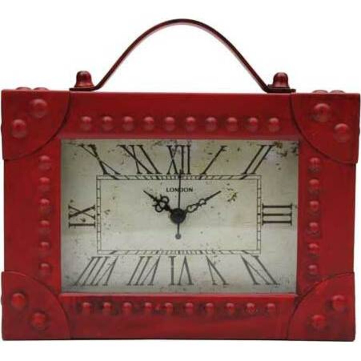 An unusual and stylish mantel clock with a rustic, timeless feel that will suit many applications in the home. Whether for the study, lounge, or bedroom, this concept clock will provide added interest to liven up the mood. The face is cleverly designed to have an aged look, and with its Roman numerals and London theme, it's easy to believe it really has antique value. Despite the traditional style and intricate work of the clock hands, the face is easy to read to make this a practical timepiece as well as a beautifully decorative work. With practicality in mind, the rectangular design makes it stable enough to position anywhere, and the convenient handle makes repositioning swift and safe. It is also a good conversation starter, an icebreaker. What is the story behind the clock's solid construction with its rivets and boxy construction? Was it a worker's clock or perhaps used at sea? A unique, compelling clock, and highly versatile.