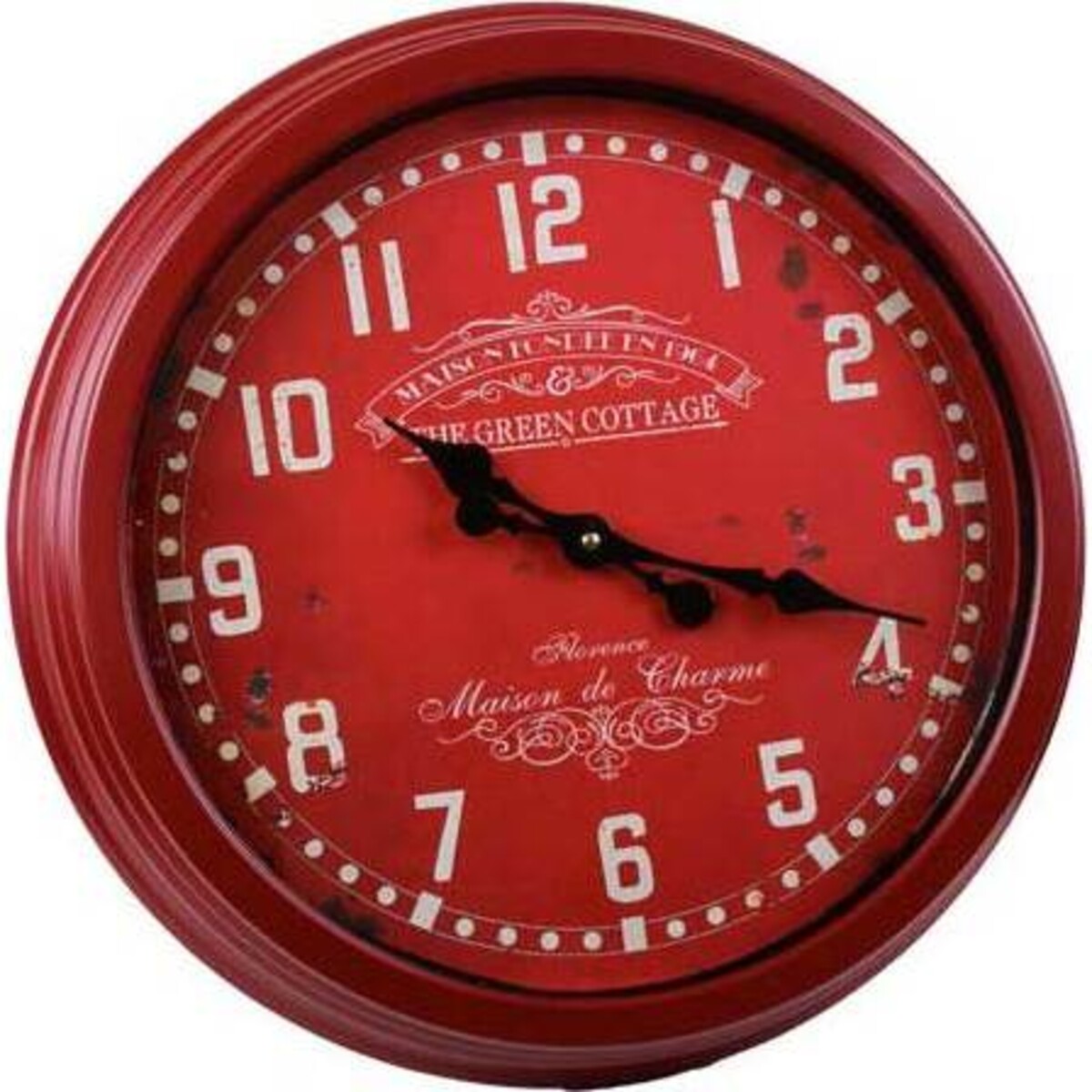 The dial of the clock reads - The green Cottage 1964évery neo modern in its colour usage and yet very classic in its style, this is one time piece that will fulfil its role as a decor piece as much as a time piece. Riveting in its colour and fabulous design, the clock is about 46 cm in diameter making it large enough to give a wall a prominent showpiece. Kept with other vintage and era pieces would create just the right ambiance. The rusty red, the dark hands of the clock and the ornate printing of the numbers and names in white look very refined and classic. Would also make great gift for a connoisseur of vintage items. The metal and glass used in the clock is superior quality that will see years of usage.