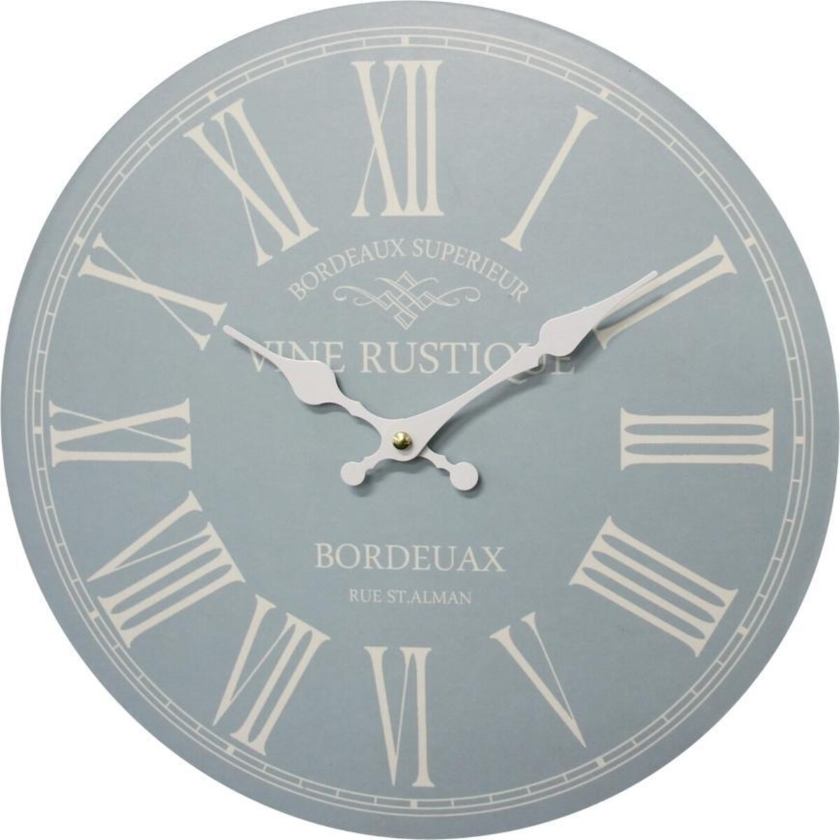 The very soft colour will make this clock seem special. The touch of vintage French charm does the rest. While this clock will suit most spaces -be it modern or contemporary, the clock will ensure that your spaces gain a wonderful touch of elegance and charm that is completely classy. The numbers on the clock face is in white and adds to the subtle beauty of its look. The clock is 34 cm in diameter and hands are in white which complements the white numerals set against the soft blue of the backdrop. A clock is a necessary part of every room and creates a certain amount of centring in your spaces. Add this charming piece right above the fireplace or place it above the console and it will sure get all the attention. The French styling makes it more charming as if it belongs to another era. The construction of the clock is sturdy and should see you through years of great time keeping.