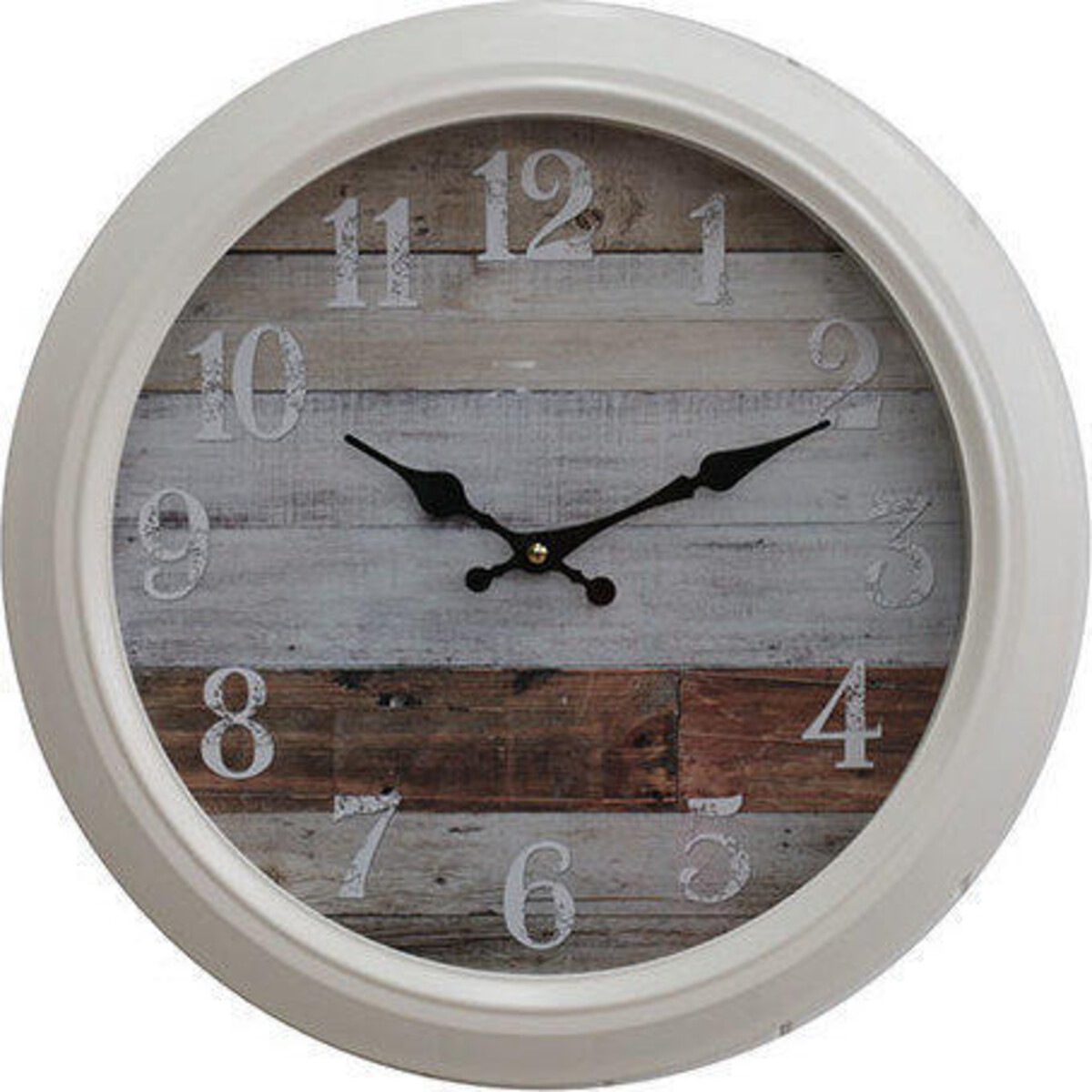 While clocks logically are devices that tell time, designs as delightful as this clock with a shabby chic pattern does more than that. Made with an eye on helping centre your theme ore on shabbiness - here the care has been used to make the face look pre - aged and the numbers fading out as if having seen years of usage. The white rim in metal makes the definition more accurate. The subtle colours of weathered boards add a touch of soft colour effect that is unmistakably shabby chic in its elemental quality while at the same time the colours blend in with ease with all kinds of d?ɩcor theme - more classic vintage as well. The clock will look splendid above the console, in your bedroom, the sideboard, or in the living room above the main mantle. There are so many good reasons to look forward to the good times and of course, a good time piece as well!