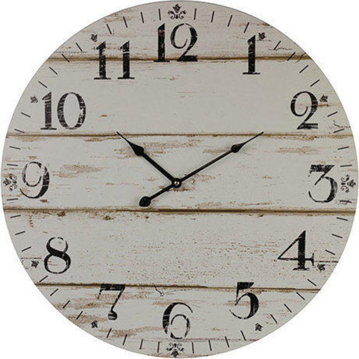 Clocks have long risen up from their old and traditional styles to emerge as a part of the décor and here is one that makes quite a splash not just with its modern shabby chic looks but has great functionality as well. Made from MDF, the sturdy clock features a round shape with a face that wears the look of weathered boards. The 58 - cm diameter makes it large presence on the wall which is why it works splendidly as gallery clock or one that could fill up a space on large walls in hallways. The subtle hints of shades in off white and dull white give the impression of aged wooden board painted white - and the numbers printed on it strike a vivid contrast. The hands of the clock in dark colour makes the visibility pf timer quite clear. The clock has a chic contemporary appeal which verges on antique owing to its aged look. Great for both formal and informal spaces.