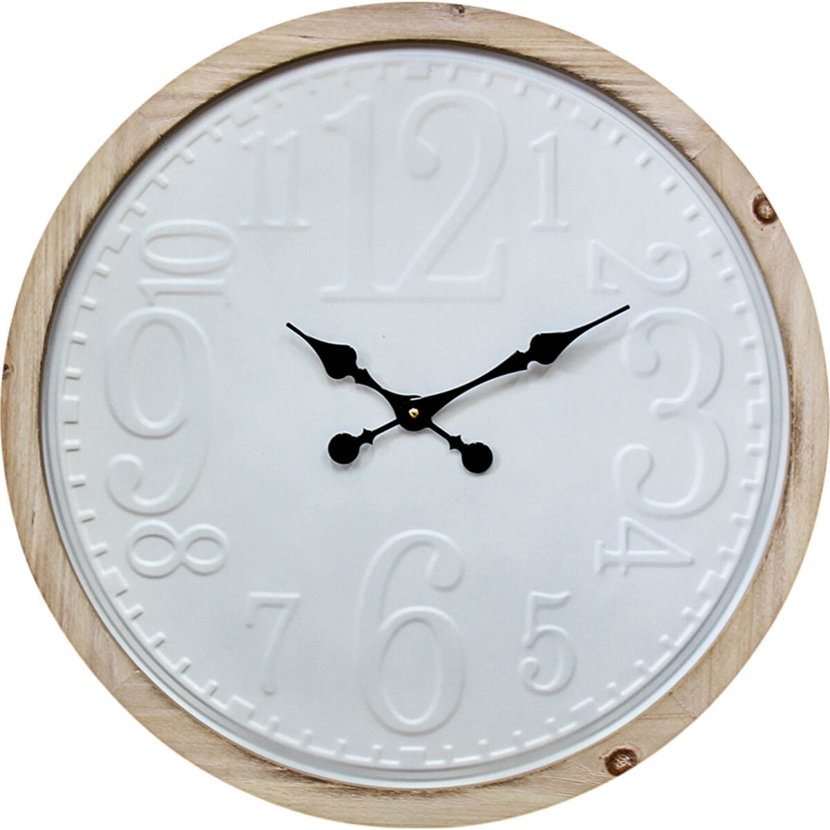 The Clock White/Nat Multi 63CM is an exquisite wall clock which would look graceful on whichever wall it is hanged. It is made of specially engineered medium density fibreboard in a circular shape. The clock's numbers are imprinted in different sizes with some numbers facing odd positions in an alluring way. This interior part of the clock is lusciously lacquered in unsullied white colour while the black clock hands add a contrasting flourish to the whiteness. The outer edge of the clock is left in its natural wooden brown colour.