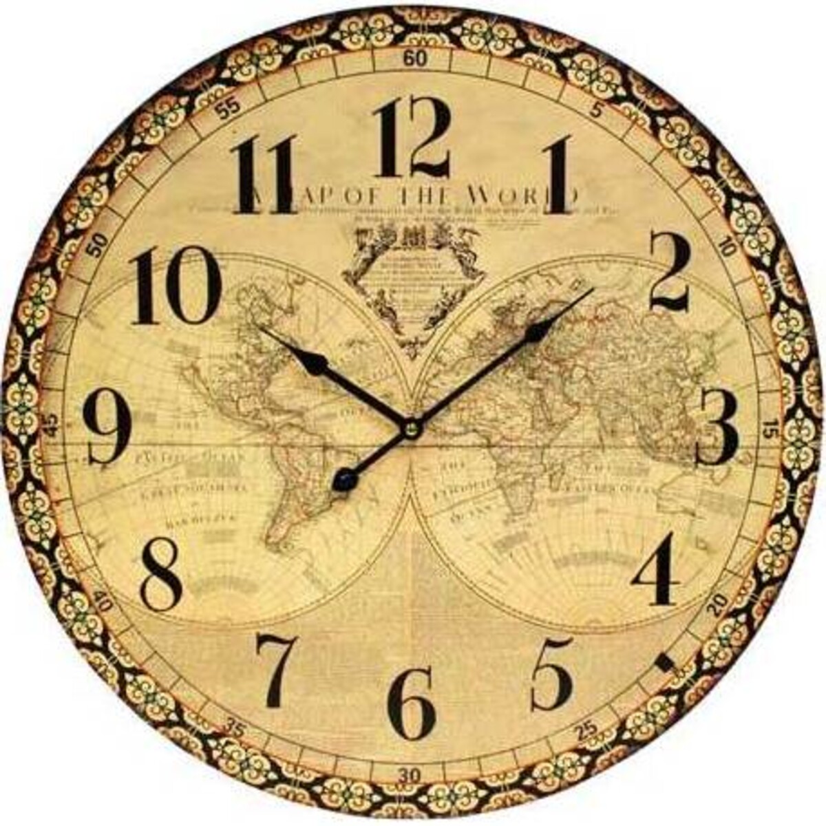 Introducing the World Map Clock from Lavida, the decorative accent you'll never know how you did without. This round, tan coloured clock features a stunning embellished border, black numbers, and a vintage style map of the world in the background. Whether you put this in your office or living room, it'll make a lovely addition to your home. While all your guests will think you paid a fortune for this exquisite piece, you'll know how affordable it really was. Don't worry, we'll keep your secret.