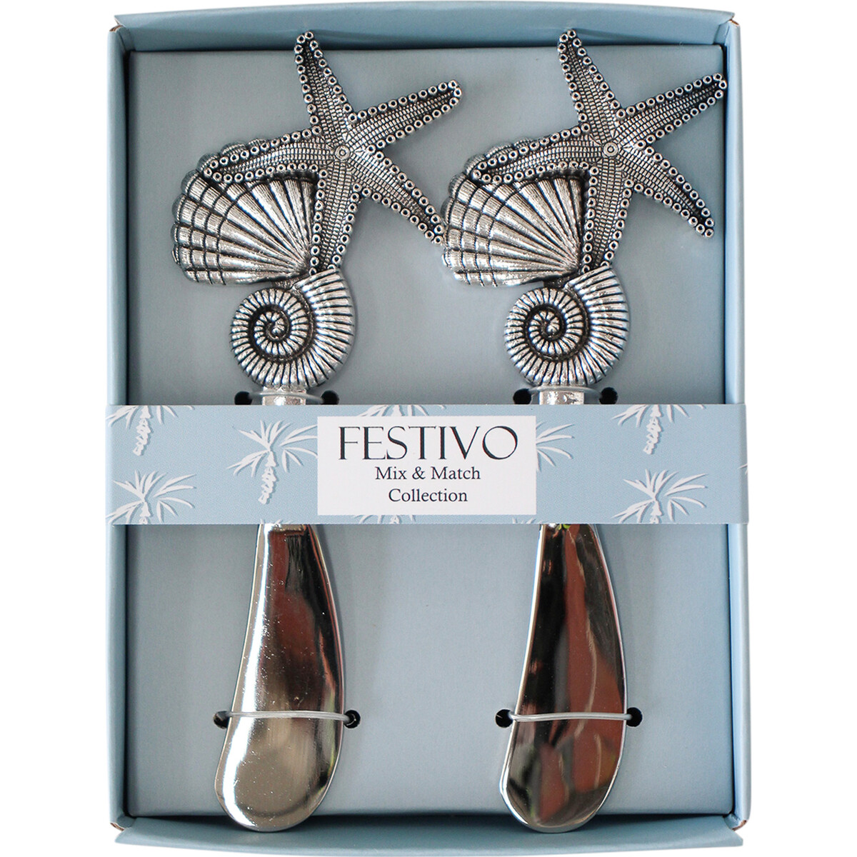 Right from bowl and spreaders, to canape servers and regular spreaders-this package makes sense if you wish to collect accessories for serving that align perfectly with the same thematic-the seaside and the beach. You will see the usage of palm trees in the motifs used across the various designs on the different items in the package. For making the style and the look of each of these articles look tehri best the package also fits in a display stand that has individual spaces for each kind of articles. A convenient means to display the entire range of items with the same design thematic. Right from the shells on the wine bottle charms to the spreaders with palm trees on their handle-each piece holds its own unique place in this package making its truly special.
