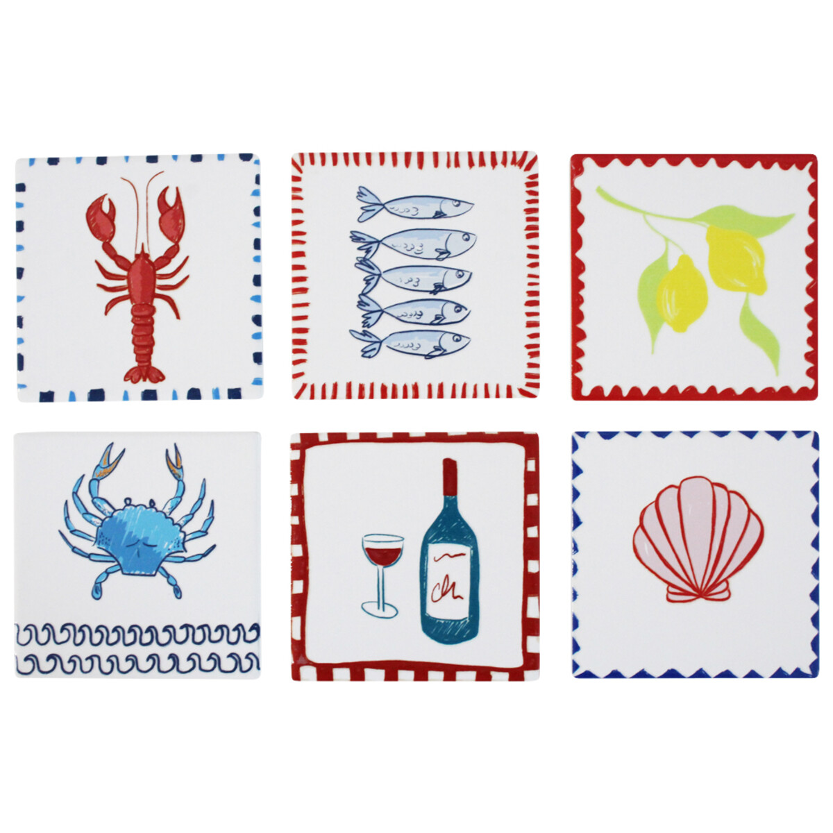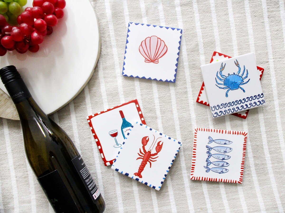We’re always on the hunt for those coastal pieces that spark a little smile - and our Mediterranean Assorted Ceramic Coasters do just that. There’s something so laid-back about the beach holiday vibe, even for people who’ve never set foot on the Med. Our 10x10cm coasters are all designed in Australia. They feature bold, colourful prints that feel as if they've been plucked straight from a summer picnic along the coast. Think blue crab, wine, fish, bright shells - they’re playful but not gaudy. Definitely spot-on for anyone who loves homewares that make entertaining feel easy.
