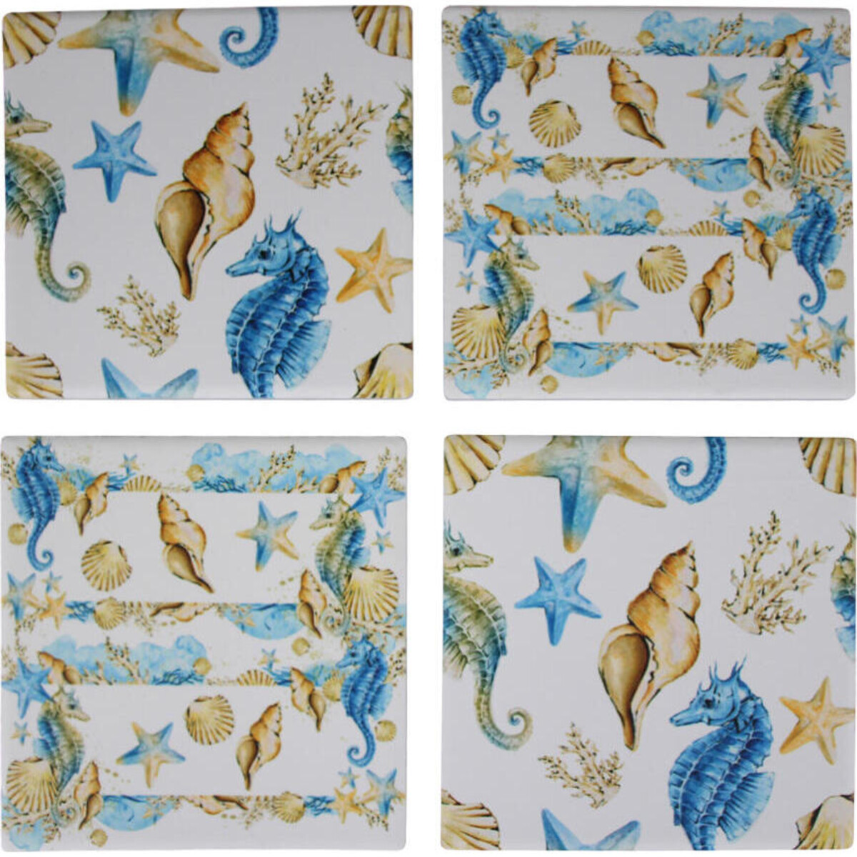 Make way for more pleasing designs that are nautical and bring with it's a certain mystique of the deep ocean. This set of four coasters come with a very fine print that has been achieved on ceramic that singularly places a great deal of onus on richness of colour and clarity of the design. The usage of ceramic is to ensure that be it a chilled rink or something scalding hot, it is bound to withstand both. Shells, seahorses and starfish - what more could make a picture more vividly oceanic. This stunning set of coasters would look as gracious on the coffee table as it would on the bar or any table that you wish to keep protected from ugly water rings or heat stains. The cork base will ensure that the coasters remains skid proof and of course it does build in more strength. Place the around and see them make the pace cheerier and filled with colour and form even while idling.
