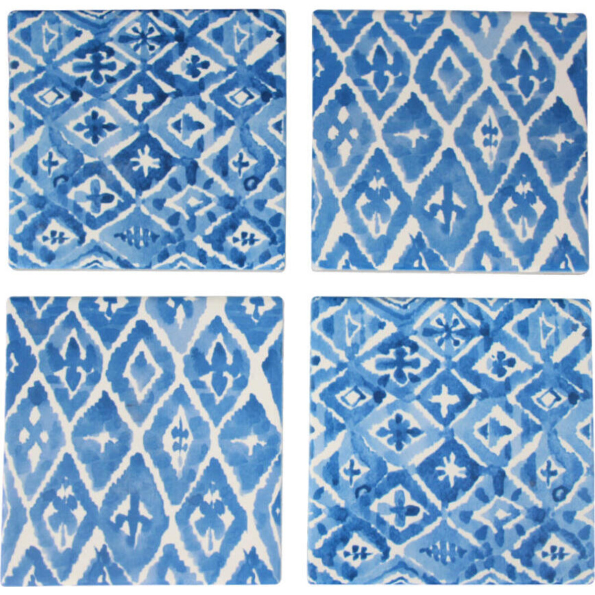 The top is made of sturdy ceramic which will withstand temperature variations as wide as chilled drinks and icy bases to superhot drinks. That is the strength of ceramic and the easy wipeable nature that makes them such a convenient material to host your glasses, cups and saucers. The set has four delightfully printed coasters that reflect the design element of a very creative mind. A watercolour like print in blue has been used. The coaster is square with 10.8 cm dimensions and you could stick them easily till they are needed again. Could be placed on coffee tables the dining table or which ever space that you like to relax in with your favourite drink. You no longer need to worry about those ghastly water rings and stains on the wood or the laminate that you have to spend a considerable amount of time cleaning up. Lend your spaces a touch of glorious fresh blue colour and of course the safety to your table tops.