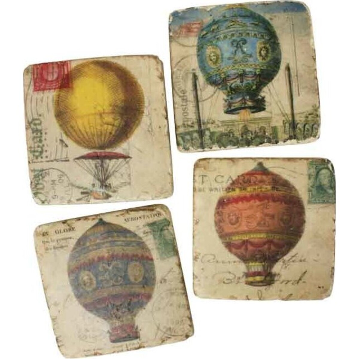 Coasters 20's Ballooning is a four piece set with the colourful and outdated finish. Each piece showcases different types of hot air balloons.