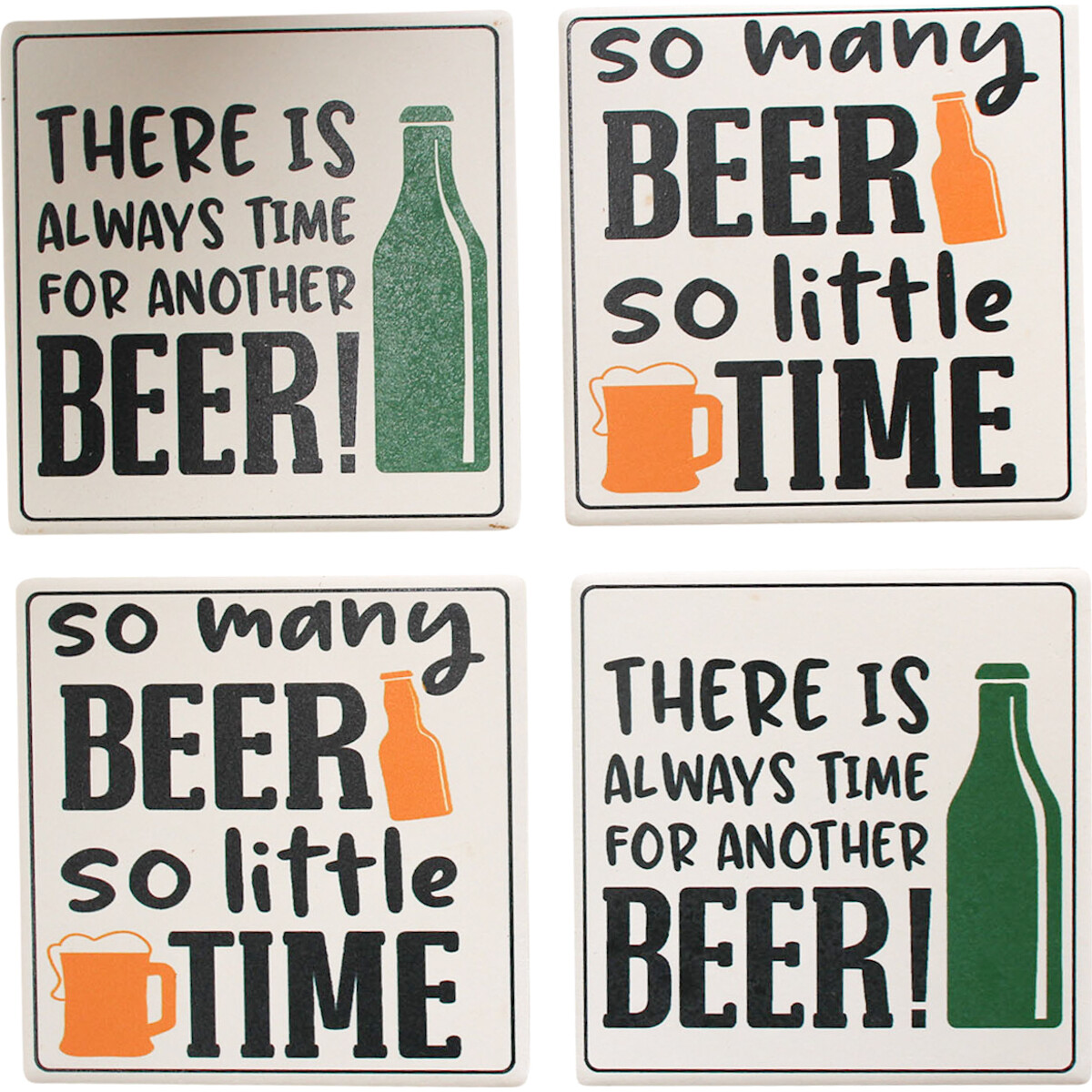 The necessity and importance of using coasters can never be overemphasized. They are highly functional in helping to prevent our much beloved dining tables, end tables, side tables, coffee tables and even countertops from being damaged by the cold sweat from drinks or the hot heat from cups. This is why the Coasters Beer Assisted is a handy furniture saver that would help prevent such avoidable messes from taking place. Apart from its functional uses, it can also be used as a decorative table piece even without drinks being placed on it. They are particularly designed to contain even large beer cups and have catchy, cheerful sayings written on them which add an air of merriment to the drinks. There are 36 in every carton you order. Go on and order yours today, your customers would love it.