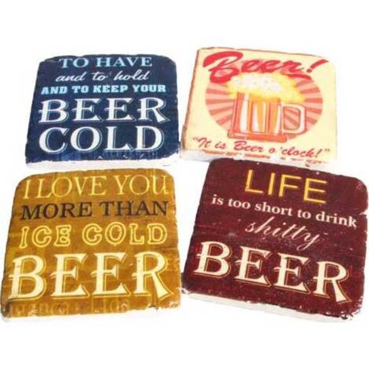 You'll get four coasters in this set, each one showing a different style, colour scheme, and quote ? "I Love Your More Than Ice Cold Beer," "To Have and To Hold and to Keep Your Beer Cold," "Beer! It is Beer Beer o'clock!," and "Life is Too Short to Drink Shitty Beer." Buy a set for yourself and give another as a gift to anyone who loves a good beer at the end of the day without leaving water rings on the furniture.