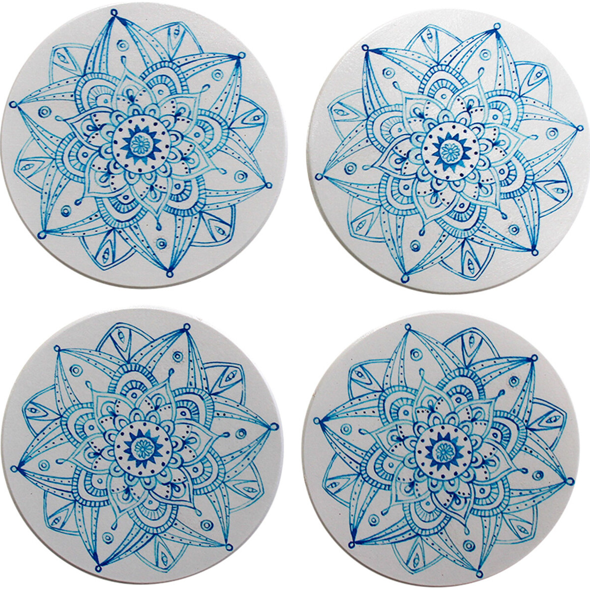 This set of ceramic blue coasters has a rustic charm to it. It combines intricate designs and functionality to give your home a vibe of sophistication. The blue mandala designs on the coasters are an ancient art form that comes from Buddhism which is said to bring peace and harmony in the home. This small piece of kitchenware has lines that combine in delicate curves to form patterns that are sure to amaze the observer. The water-like colours beautifully complement the white of the coasters and give the curves of design a wave-like quality. The colours attract in the viewers and the circles leave them in a hypnotic trance while they ponder over the pretty design. The simplicity of this coaster makes it seamlessly blend in with the decor of your house. It also makes a great gift for your loved ones as a symbol of your affection.