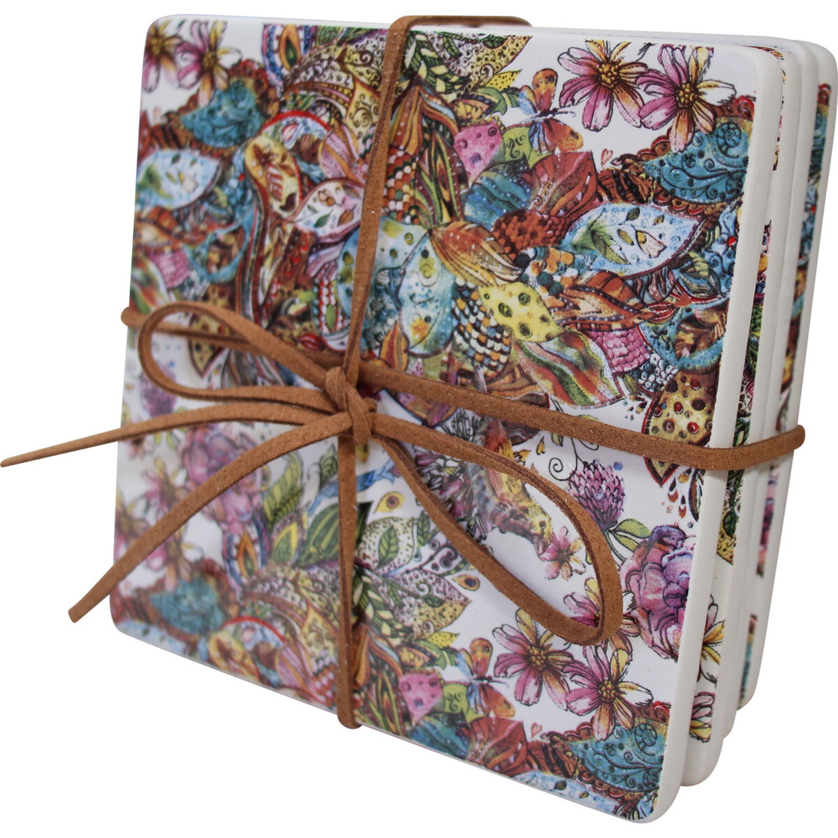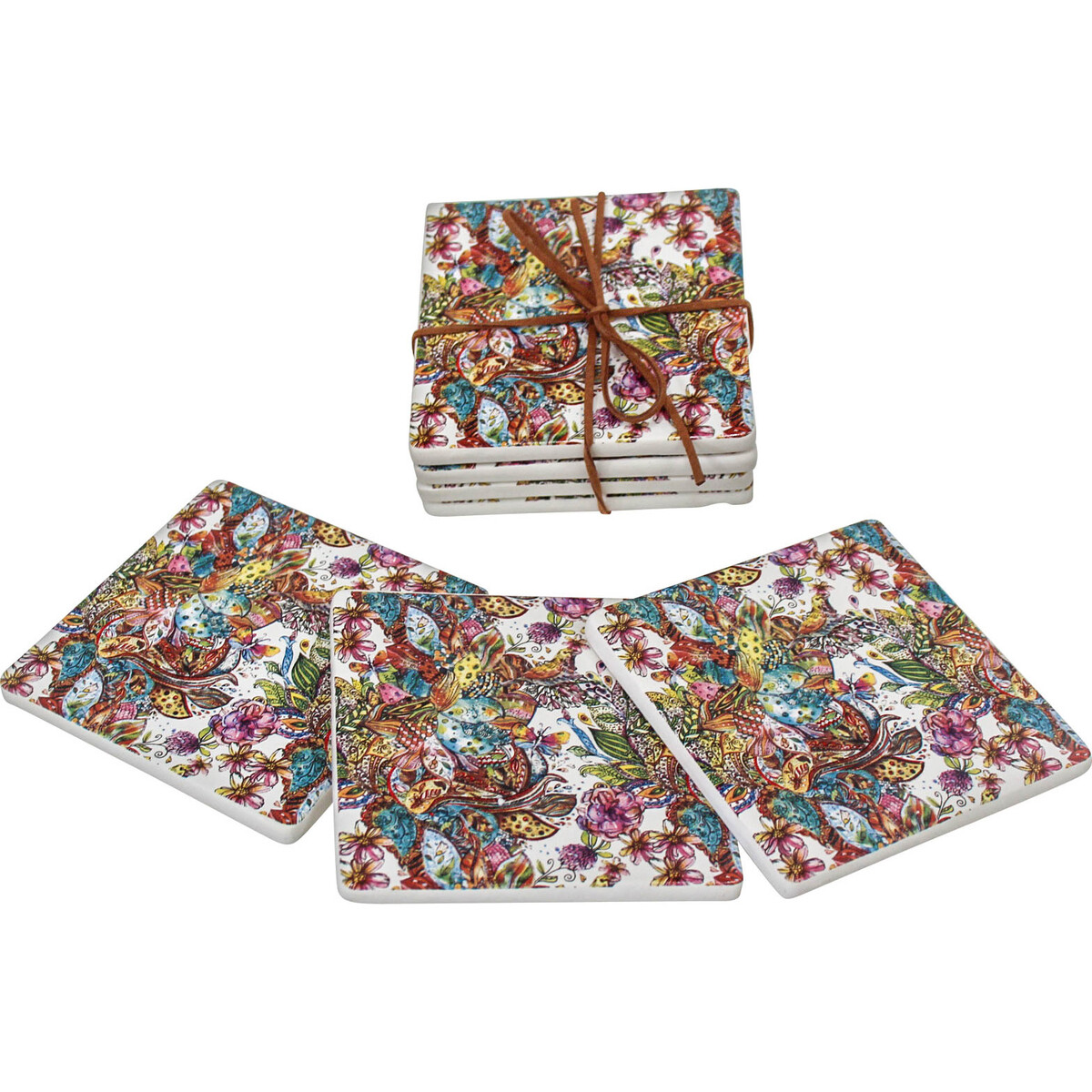 Colourful with a variety of motifs, this is one useful type of tableware that will serve its utility along with adding to the look of the interiors. The multicoloured designs will easily match any decorative setting while also keeping the counters and tables unscathed! Their impermeability makes them usable again and again as they do not collect liquids from the beverages. The coasters are tied together with a matching ribbon and will also be handy for those times when you wish to give a gift that will truly be appreciated by the one who receives it.