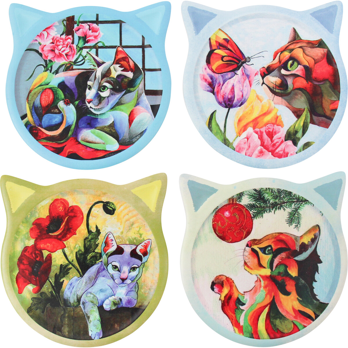 Did you know that cats can actually rotate their ears a full 180 degrees? Yeah, they can and that is one of the reasons they are good at hearing. It is these same ears that beautifully set apart the unique shapeliness of this Coasters Cat Retro from others as it is moulded in a shape inspired by the ears of these friendly felines. The first coaster showcases a cat resting beside a pink poinsettia flower while a bug climbs its tail. The second depicts a cat preoccupied with butterfly.