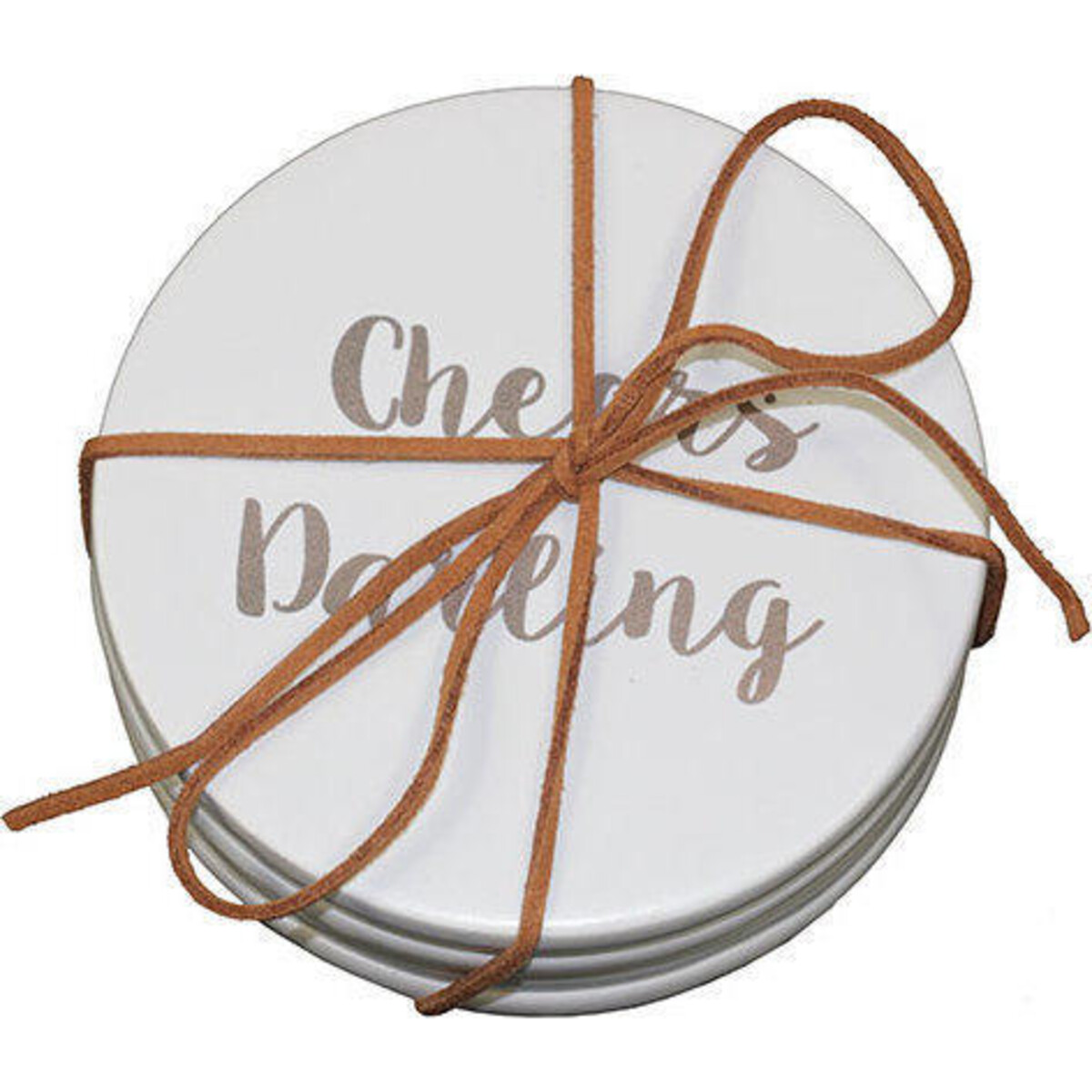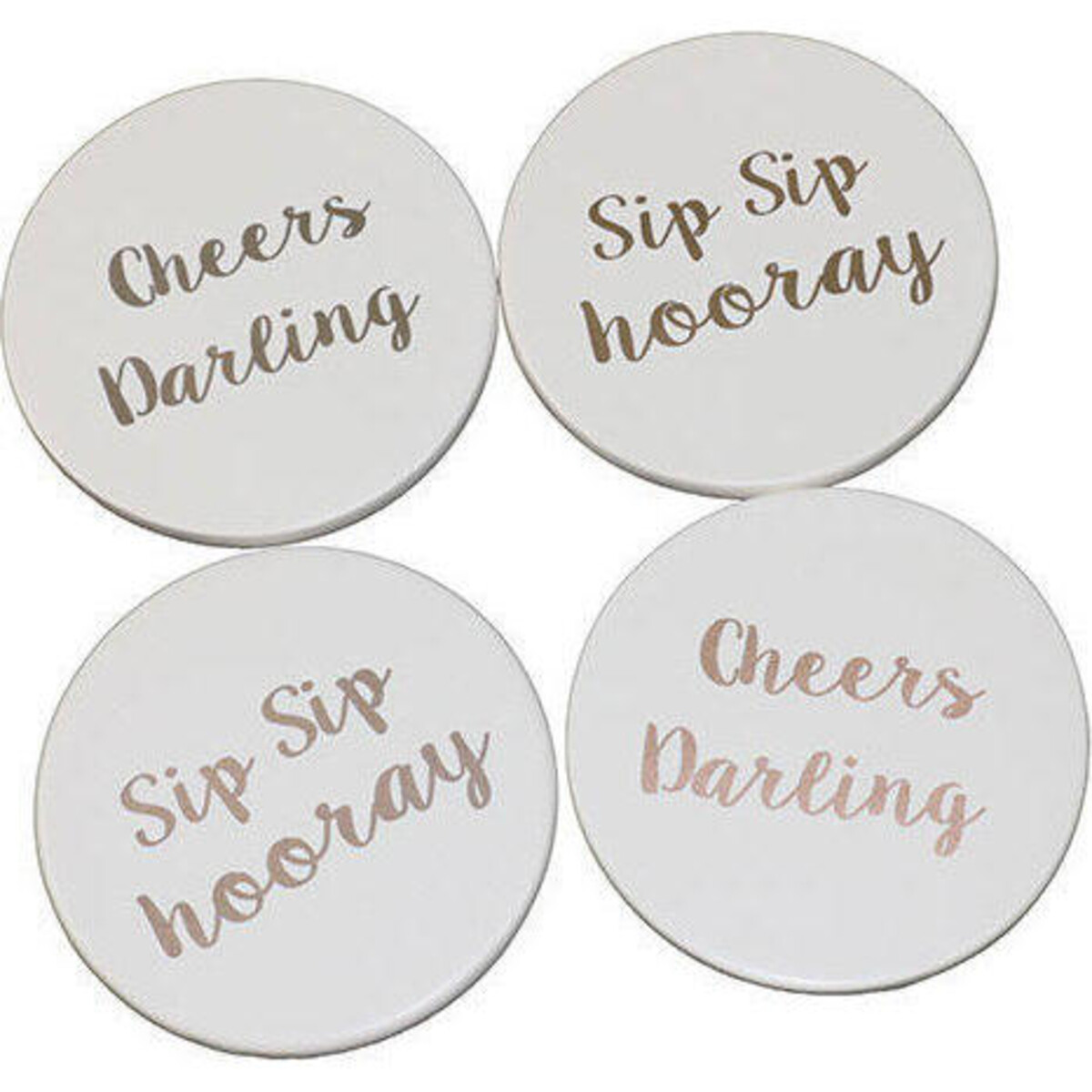 This set of coasters is round and carries on its white face message that will instantly lighten the mood and make the air more conducive for having a good times-Sip Sip Hooray and cheers Darling - are just the apt kind of message one would love to hear at the bar- and thus not only would they look great planted there but would look as pleasing on the coffee table. Easy to clean and ready to use each time you are entertaining friends and are afraid of those ghastly rings made by chilled beverage that kind of ruins the polished surfaces of wooden tables and the stains on glass tops as well. Place these coasters in these vantage locations that are usually the places that are used by guests and breathe easy.