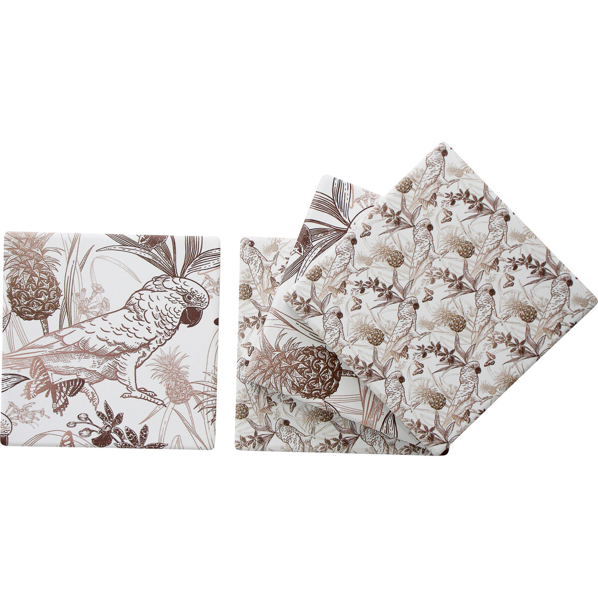 These coasters exude a sense of vintage and classic themed Cockatoo print that comes in amazing shades of standard beige colour that emit a luxurious vibe of vintage and chic. The coasters come in bold and stimulating colours that instantly bring grace in the air. Skilfully crafted with inspirations from nature and its beauty, these coasters are sure to bring home chosen love and beauty from nature. The sweet style of this adorable depiction of nature highlighting the unique and beautiful Cockatoo is sure to bring a smile to your face! To maintain the vibe your home emits, why not choose something classy, elegant and gorgeous. This coaster set features Cockatoos carefully inset in material made from dolomite and cork. The stunning colour combination gives these coasters a timeless appeal.