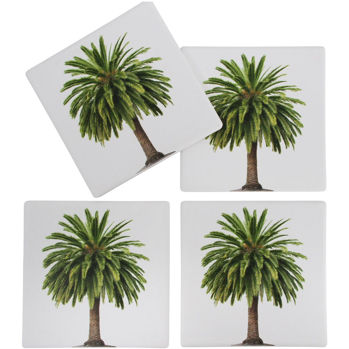 Did you know that a huge amount of date palms is cultivated worldwide? In fact, this delectable fruit is so popular to the extent that it covers 3% of the total cultivated land area on earth! That amounts to growing nothing less than four million tons of this fruit every year! It is this same popular plant that gorgeously decorates the shiny surface of all four coasters contained in this set. The square shaped coaster has an ash coloured decorative background. Over this is presented a vivid image of a single date palm with all of its many green leaves.