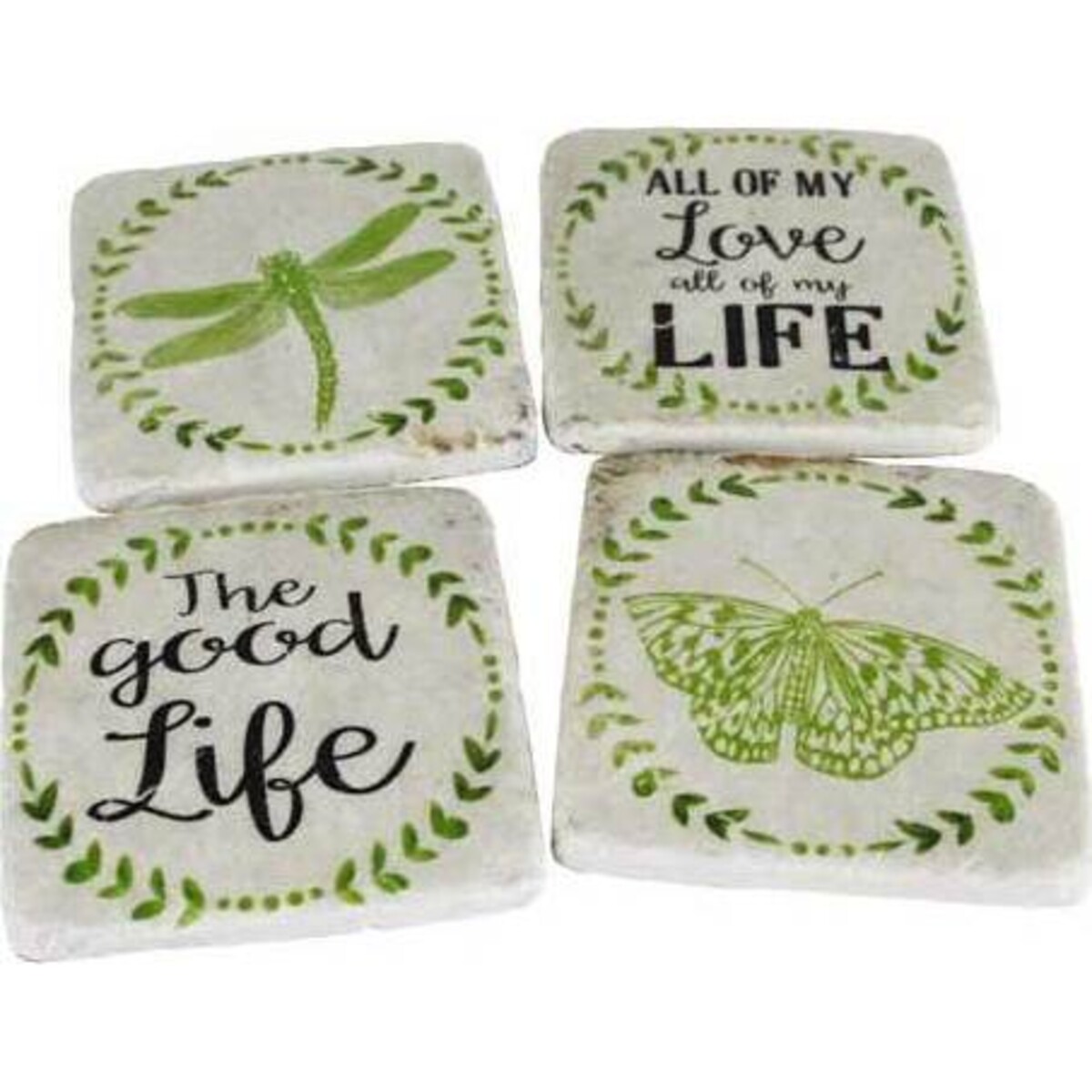 Making sensible choices for your home is a part of keeping it looking new and clean even after usage over years and making that possible are coasters that save your furniture surfaces from getting stained by water rings, hot beverages that spoil the varnish or spillages that can stain horrifically. When the party gets loud and the drinks flow hand out coasters to all your guests so that they use them which ever place they wish to place them. This set comes with a pretty little message that instantly makes one feel the lightness of a being - dragonfly, a butterfly and a message that says all my love, all my life - denoting the lovely feeling of being loved all the time and reciprocating that. Simply put - these are your lifesaver coasters for everyday use so that your home continues to shine like new and by adding such pieces round the house you keep people appreciating you for your great taste as well. Made of resin, they will be long lasting and will also be fade proof despite much usage.