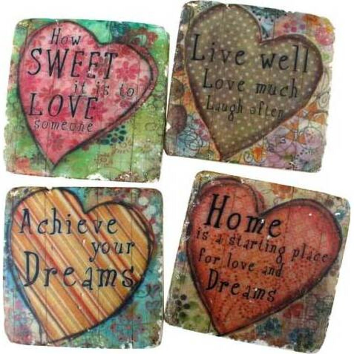 You'll absolutely love displaying these Dream Hearts Coasters from LaVida even when you're not using them. All four coasters have the same design of vibrant heart over a colourful background, but each has their own special colour scheme and patterns. In one heart it says, "How sweet it is to love someone," while in another it says "Live well, love much, laugh often." A third heart reads "Achieve your dreams" and the fourth says "Home is a starting place for love and dreams." Display them for Valentine's Day or all year round and they'll make a lovely addition to your home.