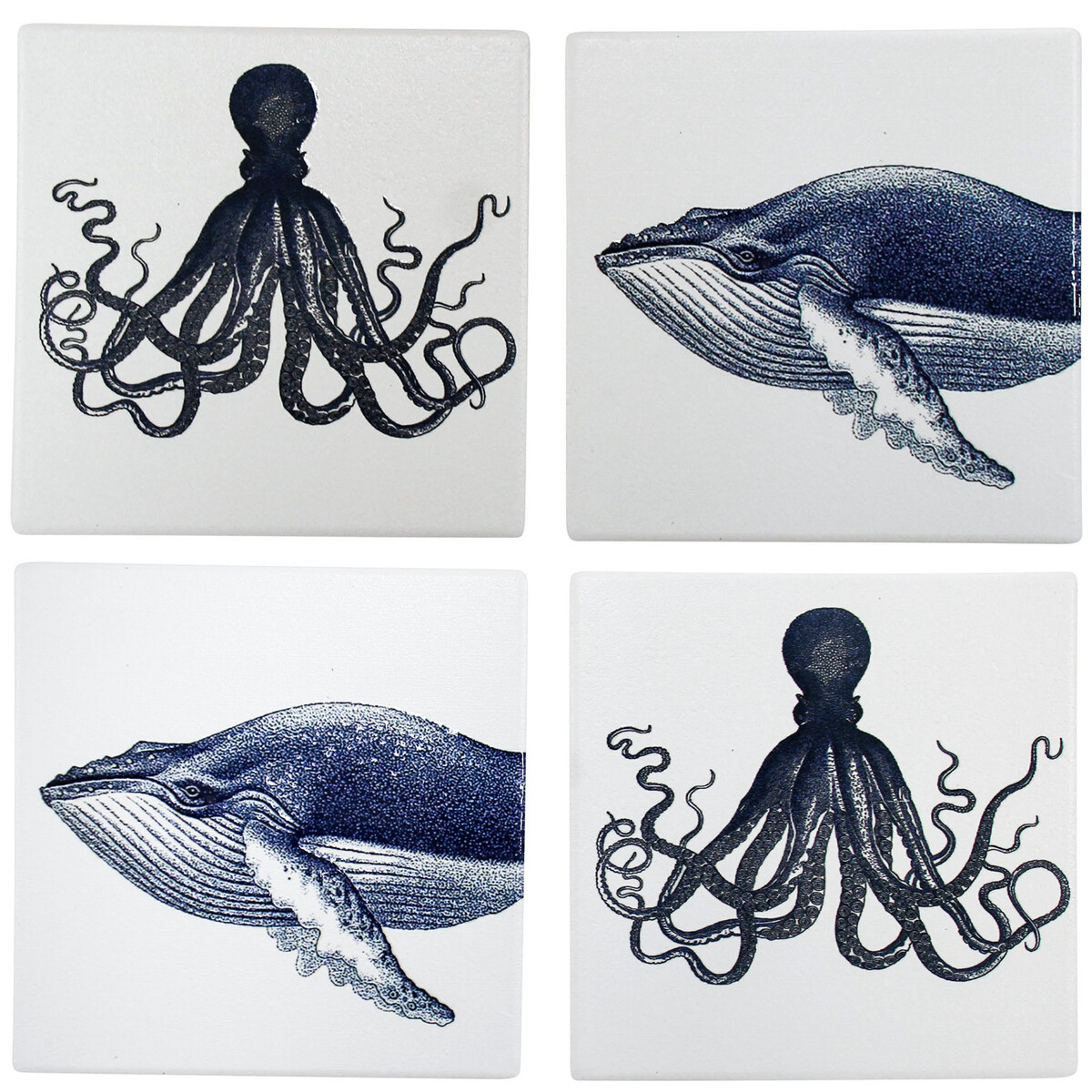 We know patterns can sometimes overwhelm interiors, so the paired-down palette here is a major benefit. These fit comfortably into monochrome or minimal spaces as much as they do in bolder coastal rooms. They are not too bright either - navy on soft white is a classic match for any season. At 9.5x9.5cm, they're large enough for most mugs and glasses, and the quality finish shows off intricate illustration details.