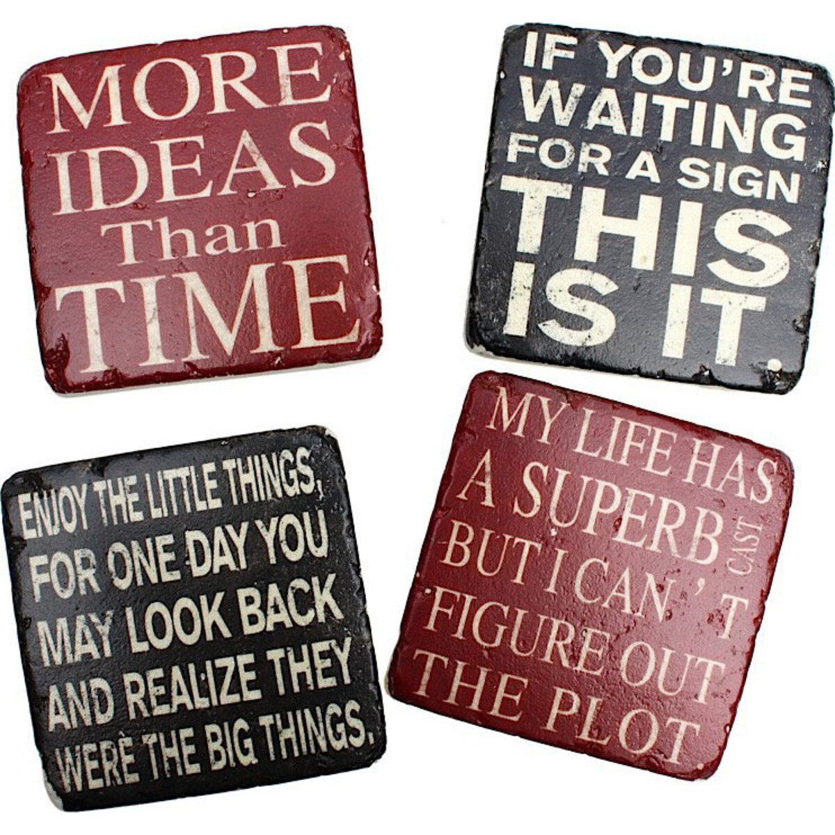 What makes these sets of coasters different is that each of them is printed with a quote or saying that will surely catch your diners? attention. These quotes and sayings can be funny and wacky at times, but still carry a sort of depth in meaning, something for your diners to ponder on while eating.