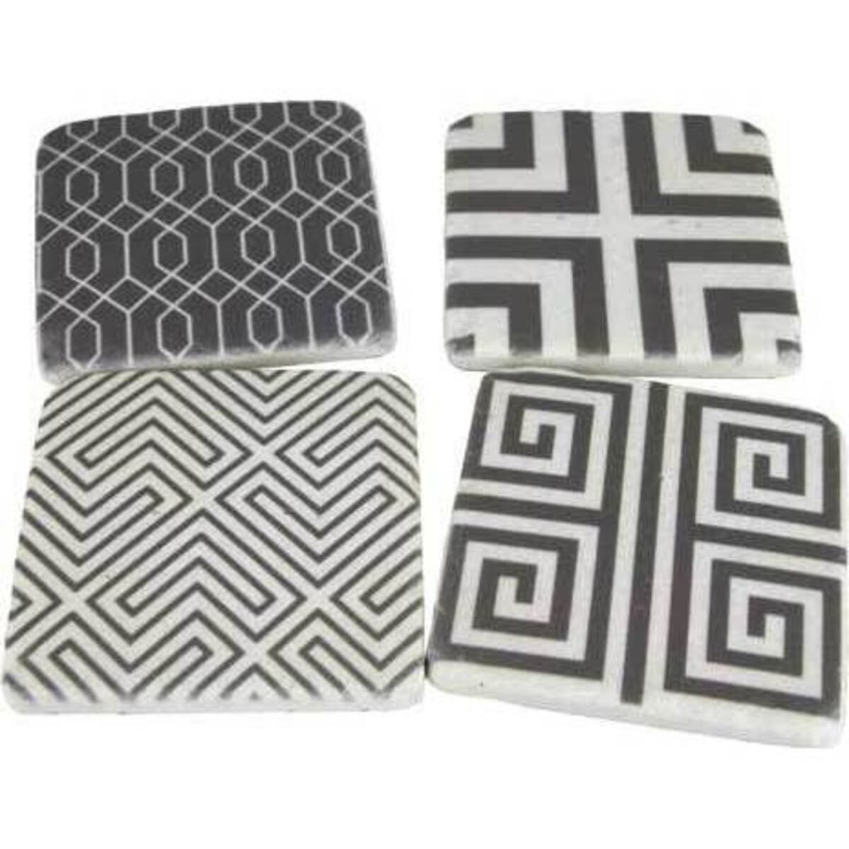 Easy to wipe clean and highly durable, this set of four coasters come in white and black theme with patterns that are unique to each piece. These square shaped coasters have great style elements like the monochromatic colure scheme that looks handsome and eye catching. The resin is high quality that makes the coasters not just fade free in its colour but also highly durable despite being used for cold and hot drinks alike. Save yourself the slavery of cleaning up each time guests come over and you have to remove the terrible stains from table cloths, table tops and other spaces. Keep such coasters handy and see how less your burden of after party work reduces . The colour scheme is handsome and will look great in any kind of decor setting.