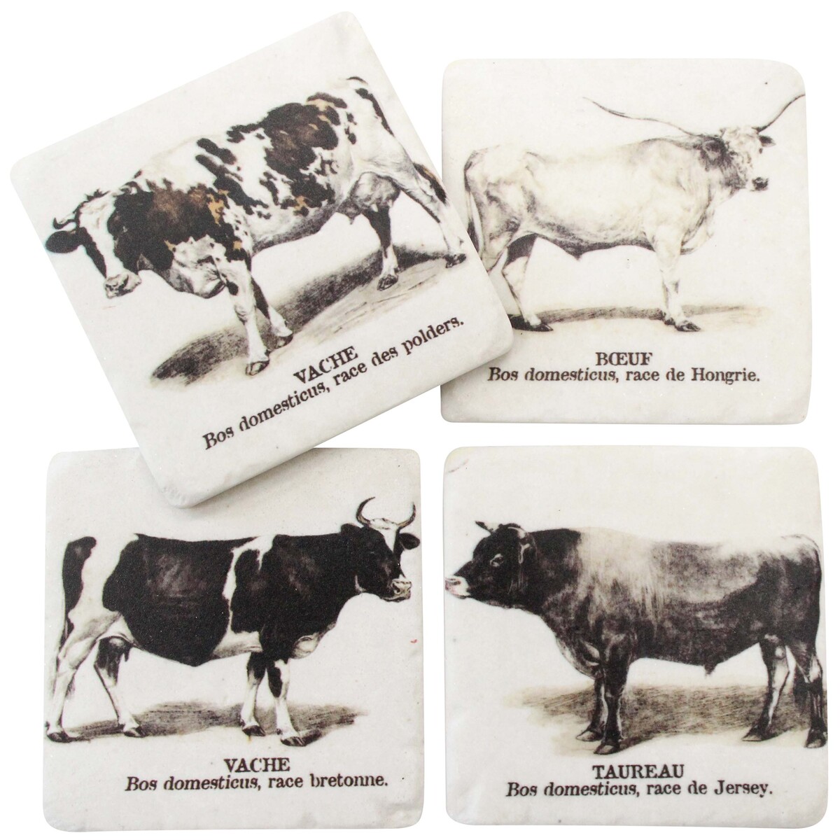 We have to admit, we love these Coasters S/4 Cows for how quirky they are - there just aren't enough cows in homewares. These detailed coasters bring an unexpected sense of style to decor, and we've found they're surprisingly versatile. Sometimes the best pieces are the ones that look entirely out of place - after all, every room needs a conversational piece. We could definitely see these as a fun addition to a rustic farmhouse kitchen or even a stately office setting.