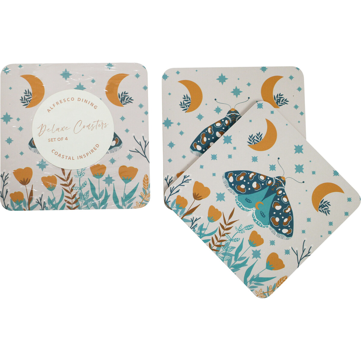 We’re always delighted to find pieces that celebrate the little things - patterns, colour, motifs that feel like home. These Folk Butterfly coasters are just the sort of sweet pop of personality that makes a difference on display and sitting out on coffee tables. The set of four features a whimsical blue butterfly surrounded by flowers, stars, and moons in ochre, teal, and pale blue. MDF with a cork backing, each square measures 10x10x0.4cm - a comfortable size for mugs or short tumblers.