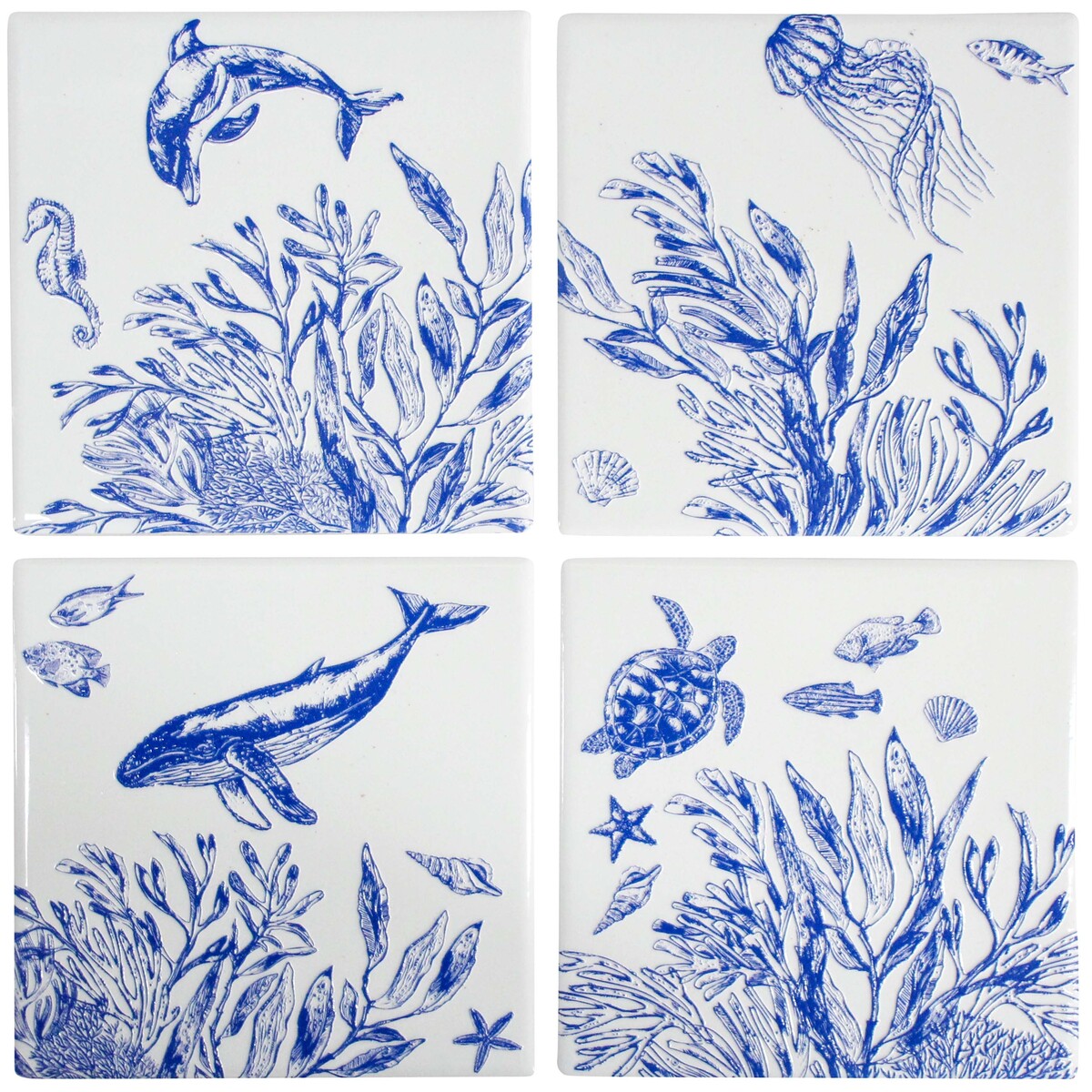 We’ve kept them simple on purpose - no border, no extras. That way the 10x10cm ceramic tile really shows off those fantastic corals, dolphins, jellyfish and turtles. Each coaster is different so it’s a fun set to mix on a coffee table or desk. They’re also made for easy cleaning after any spilled drink - it all just wipes right off.