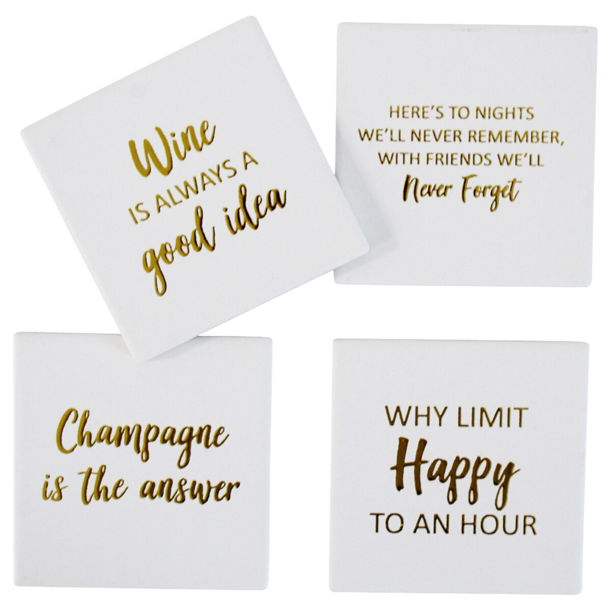 The white finish with those gold scripts - “Wine is always a good idea” or “Why limit happy to an hour” - offers this gentle nudge of whimsy for home entertaining or even the office. Ceramic’s always a winner because it’s got that nice weight to it - not like flimsy cork or plastic versions, if you know what we mean. At the end of the day, it’s about giving customers something easy - easy to display, easy on the wallet, easy to slot in with basically any decor scheme from minimalists to maximalists.