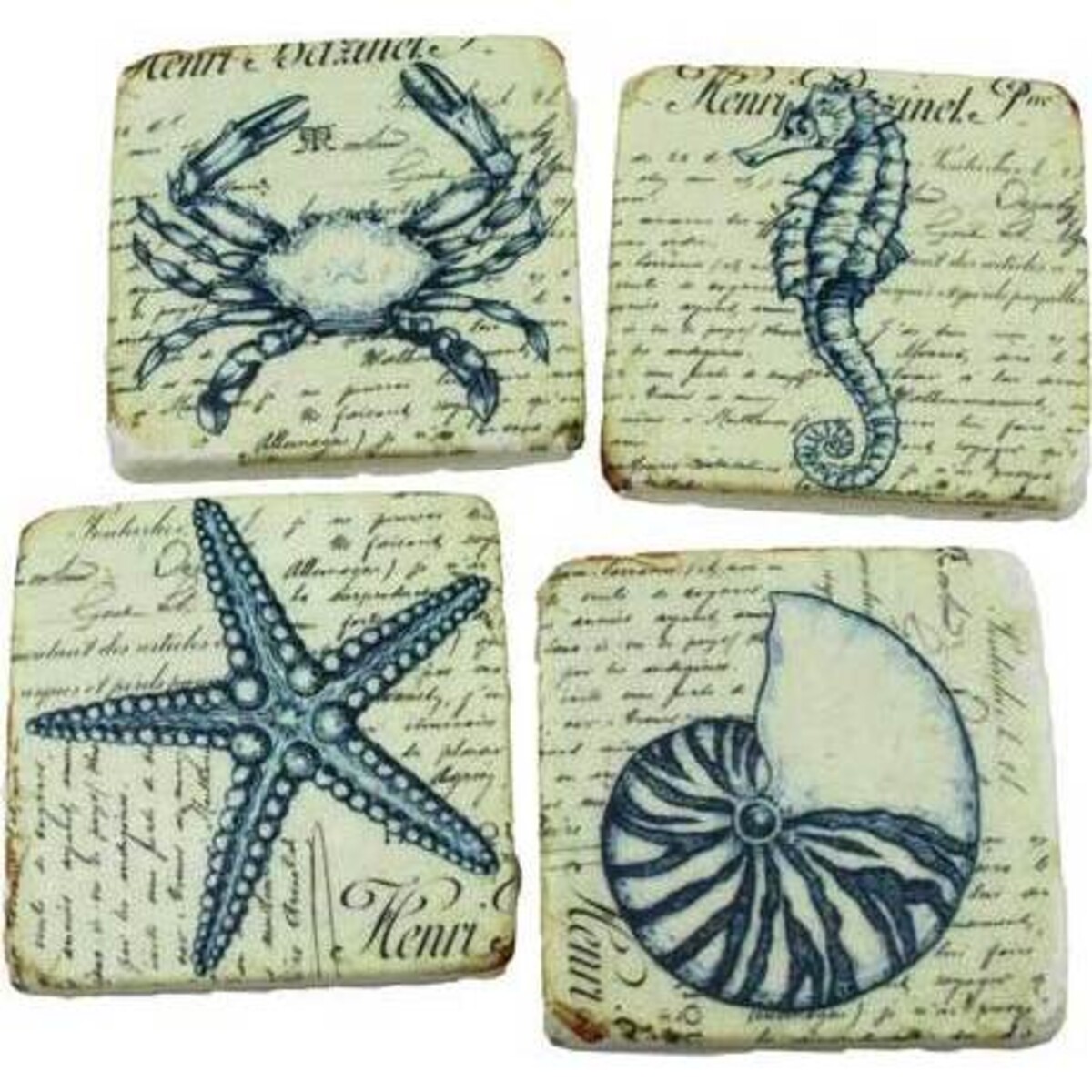 This marine inspired set of coasters has many things going for it - the absolute beauty of the pictures of the starfish, the mollusc, the crab and the sea horse made with a dull indigo ink and the very fact that they have been set against a backdrop of some kind of vintage print makes it seem all the more excitingly different. Coasters come in many different designs and patterns but if they have designs and elements as beautifully curated as this set of marine life coasters then they add to the decor as well. Made of resin, this 10 cm wide coaster is a perfect way to enhance the look of the table top even while they simply lie there idling. Will be easy to maintain as these coasters are made of resin and will retain their colour despite long usage and will also retain their finish despite repeated cleaning and wiping.