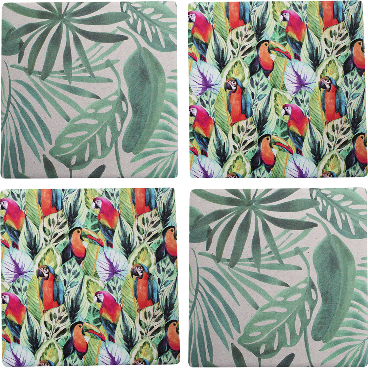 Perfect for a stylish addition to any coffee table or tea corner, these rustic dolomite and cork coasters have a tumbled stone look, each one with a different foliage pattern. It has a rustic finish to add to the life and texture of the coasters. Cork under each coaster to protect your furniture. Perfect gift that is boxed with love ready to give to your love ones. A set of four Macaw coasters, these decor utility pieces are super glossy, vibrant, joyful plus heat, scratch and fade resistant. These coasters would make great gifts for a nature lover. Keep your home sunny and windy with these tropical coasters looking at ways to create fun and festive tables. These adorable tropical coasters are exactly what you need to get the party started! The high quality coasters with vibrant print and glossy finish is perfect for any hot or cold drink.