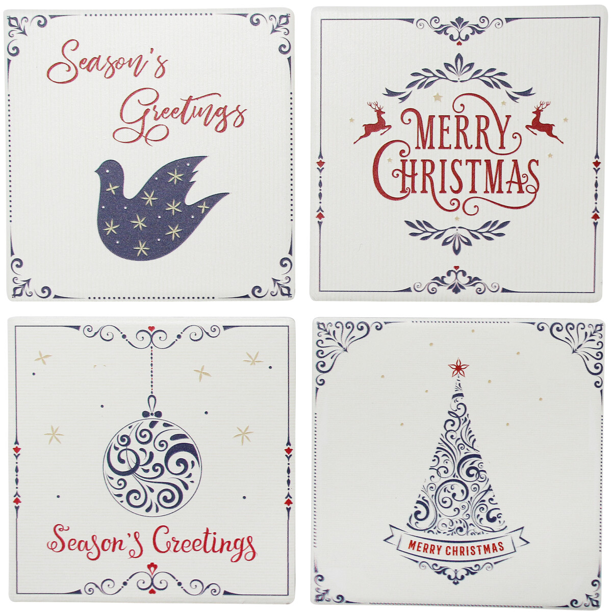 Coasters are handy, inexpensive gift items that perform the important role of protecting the surfaces of tables from the heat that often emanate from plates, cups, jugs, mugs, kettles, and other serving wares used in serving foods and drinks. In tandem with this important role, this Coasters Vintage Christmas is made using premium quality ceramic material in a fairly large sized dimension which measures 9.5 centimetres wide and an equal 9.5 centimetres long. On the surface of the coasters are various Christmas themed images of birds, colourful flowers and Christmas baubles.