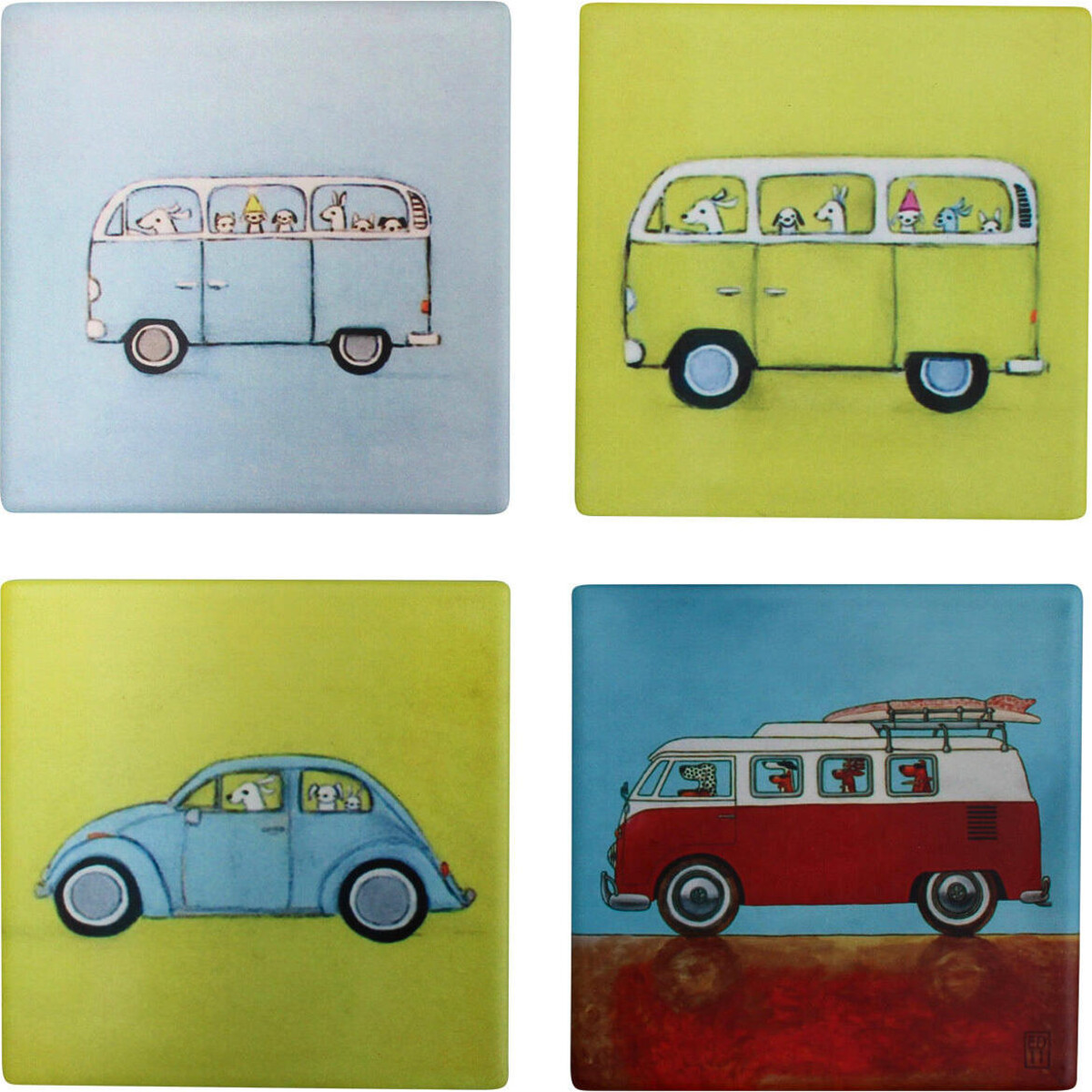 The graphic printed on them makes for an attractive pop of interest and colours that will instantly cheer things up and lend your more serious and formal looking spaces that fun and easy look that is refreshingly different. With dogs making up the print, it's sure to bring that smile back on your face, in spite of all the worries of a troublesome day and heavy workload. The resin made coasters are easy to wipe clean and super simple to maintain. Use them ion any table or counter as they are as suited for glasses and mugs as they are for pots, and pans and casseroles.