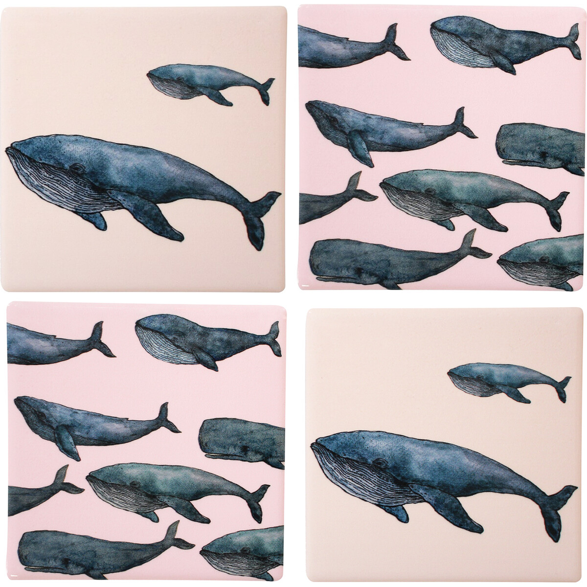 The Blue Whale is indisputably the largest animal known to have ever lived on planet earth. They can measure up to 100 feet in length and weigh up to 200 tons. They are the true apex predator of our oceans. And customers can choose to decorate their tables and décor with images of these oceanic beasts by simply purchasing and using this Coasters Whale Family which contains four decoratively charming coasters.