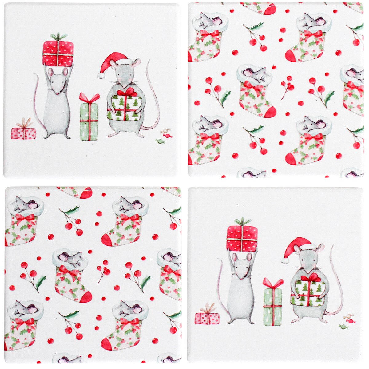 Our ceramic coasters featuring charming little Christmas mice are a delightful way to add a dash of festive fun to any homewares display. Their 9.5 x 9.5cm size is just right for protecting tables from spills, and the vibrant colours will brighten up any space. We think they make a fantastic seasonal impulse buy - easy to gift and guaranteed to bring a smile.