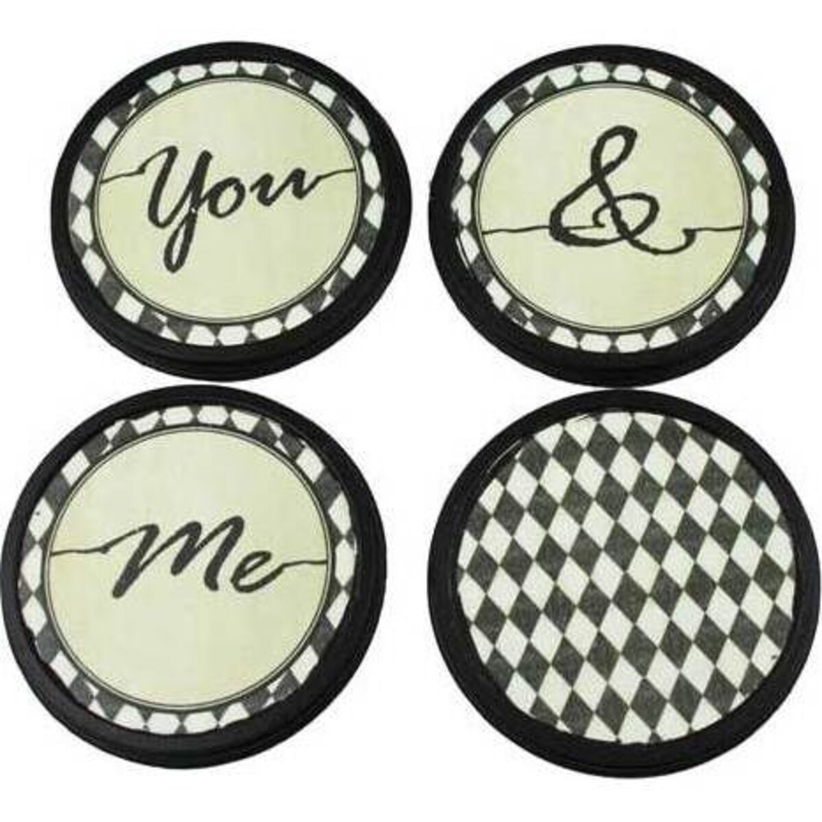 Made from resin, these coasters carry the message of being together, the company of someone we care about through the words printed on top. These circular coasters are 10 cm in diameter and come in a set of four. Each coaster has this well defined outline in black and carries distinct designs on it. The words - you, me and the letter é&é make a definite impact with their placement on top of the coasters. When kept together the words and the idea come together. When things of utility acquire a design and idea of their own they become part f the decor and substantially make a difference to the look of that space , however small their role maybe and this et of coasters most definitely is one such piece. Made from resin, it will be durable and can be wiped clean after use with ease.