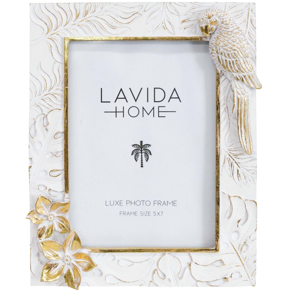 The striking design features a beautifully detailed cockatoo perched gracefully on the frame, surrounded by intricate floral embellishments. Finished in a luxurious combination of white and gold hues, this frame exudes a refined charm suitable for multiple décor styles. Whether your customers prefer modern, coastal, or eclectic themes, this photo frame will complement their existing aesthetic effortlessly.