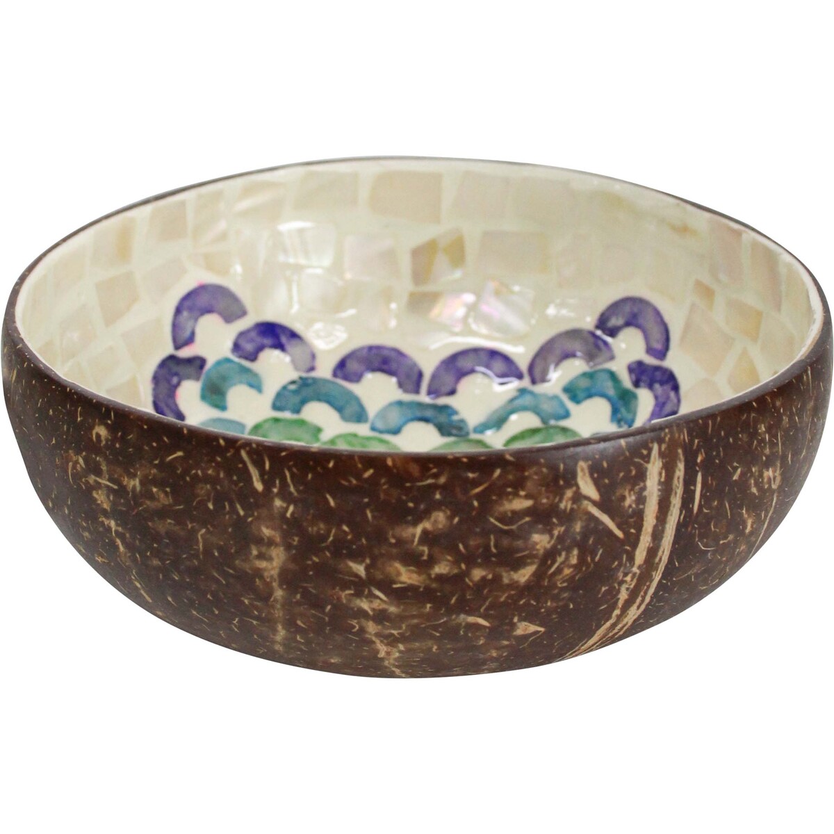 Introducing the Coco Bowl Checker, a stunning piece that fuses natural elegance with contemporary design, transforming any space into a statement of sophistication. Crafted from the robust and versatile coconut, paired with the iridescent charm of mother of pearl (MOP), this bowl is a testament to the beauty of handcrafted artistry. Each Coco Bowl Checker is a unique treasure, with dimensions of approximately 13x13x6cm, making it a versatile addition to your home or office decor.