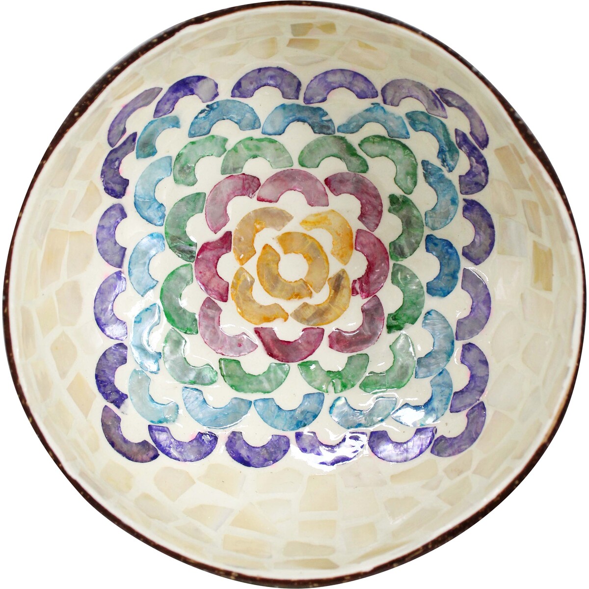 The bowl's distinctive checker pattern radiates a playful yet elegant vibe, harmonizing with a wide range of decorative themes from rustic to modern chic. Its colour palette, combined with the natural sheen of MOP, adds a touch of luminosity to any room. Whether it's gracing a coffee table with its presence or serving as a charming receptacle for your treasures, it's an item that invites conversation and admiration.