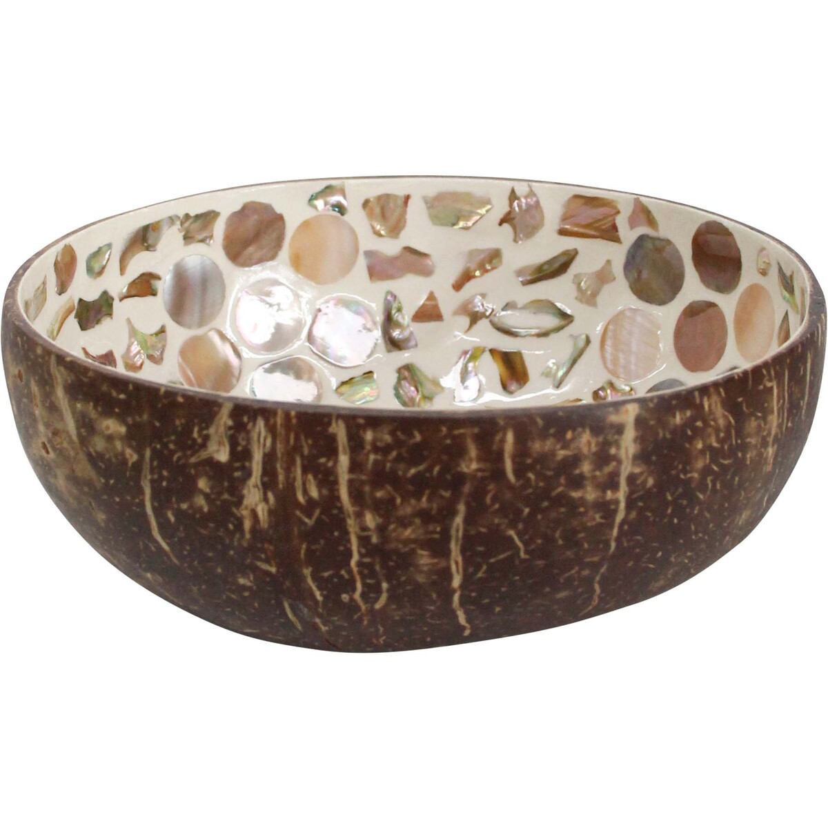 Introducing the exquisite Coco Bowl Natural Sand, a masterpiece of craftsmanship that exudes earthy elegance. Measuring approximately 13x13x6cm, this bowl strikes a balance between functionality and aesthetic allure. The rich blend of natural coconut and iridescent Mother of Pearl (MOP) catches the eye, creating a captivating mosaic that brings a touch of organic sophistication to any space.