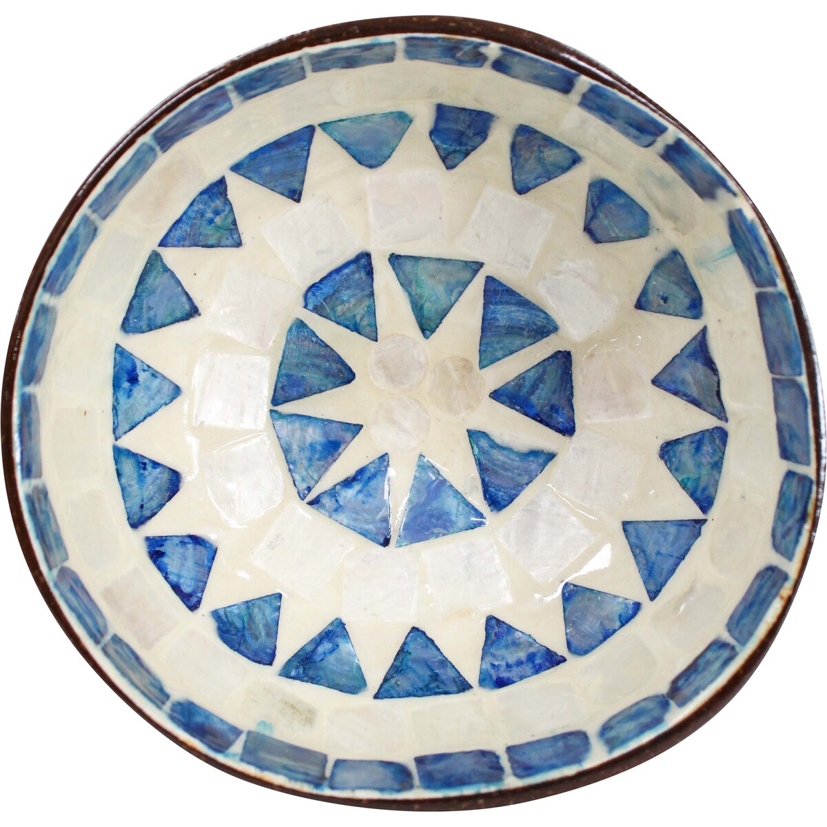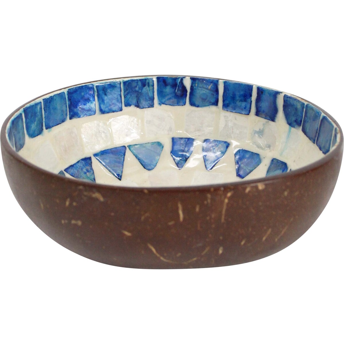 Discover the enchanting allure of the Coco Bowl Santorini, a handcrafted masterpiece that effortlessly captures the essence of coastal elegance. Fashioned from natural coconut and capiz, this exquisite bowl is a testament to expert craftsmanship and the unique charm of artisanal homeware. Each Coco Bowl Santorini measures approximately 13x13x6cm and boasts a mesmerizing interplay of colour and texture, with a glistening array of blues reminiscent of the Aegean Sea.