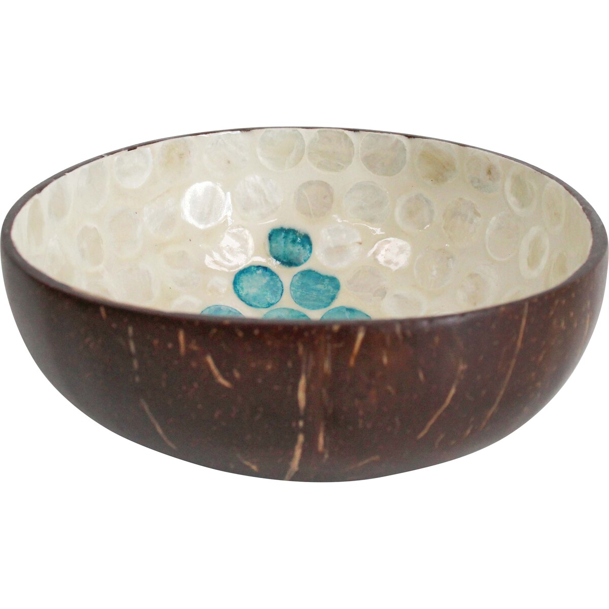 We’ve noticed these bowls tend to draw attention with their aqua accents set against a pearly white background. The outer finish stays natural - so that coconut grain really pops. We keep seeing these used as catch-all bowls for keys, jewellery or coins - but plenty of our buyers choose them as decor centrepieces for bookshelves or sideboards too.