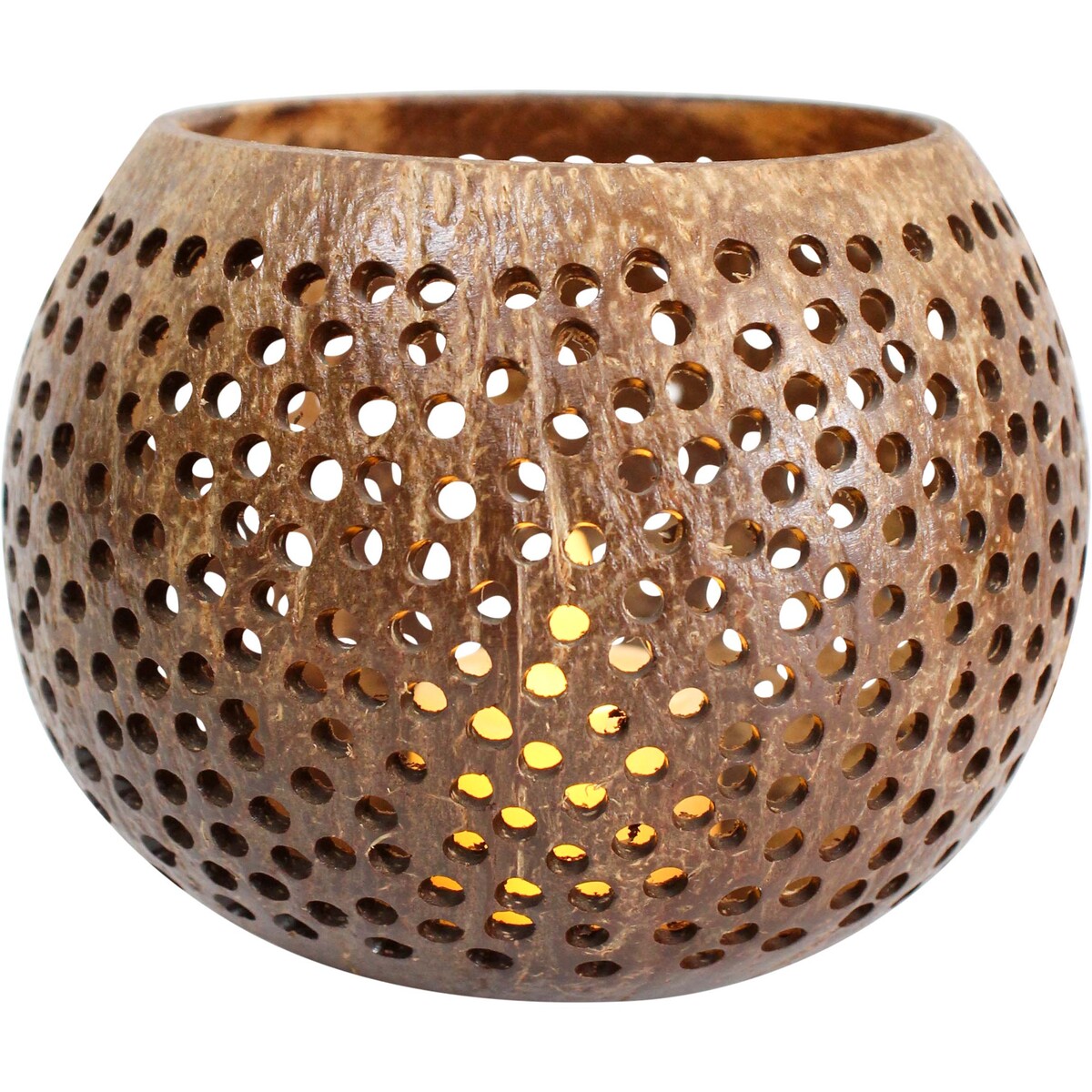 Our Coco Lantern Star makes a nice welcoming soft glow to spruce up a garden path, front porch or terrace. Thanks to the beautiful perforations on the Coco Lantern Star, light can easily pass through the shell to create a warm glow. This Lantern adds a subtle warmth to create a relaxing and friendly atmosphere. Plus, it adds a natural touch to any living space as rustic decor for the living room, bedroom or dining space. A wonderful centrepiece to charm up any coffee table, kitchen counter or fireplace mantel decor. Our Coco Lantern Star adds beautifully exquisite appeal to any decor. What's more, it's an art piece that gives off beautiful light. This coconut shell is hand-crafted and designed to create a wonderfully calm space in your home.
