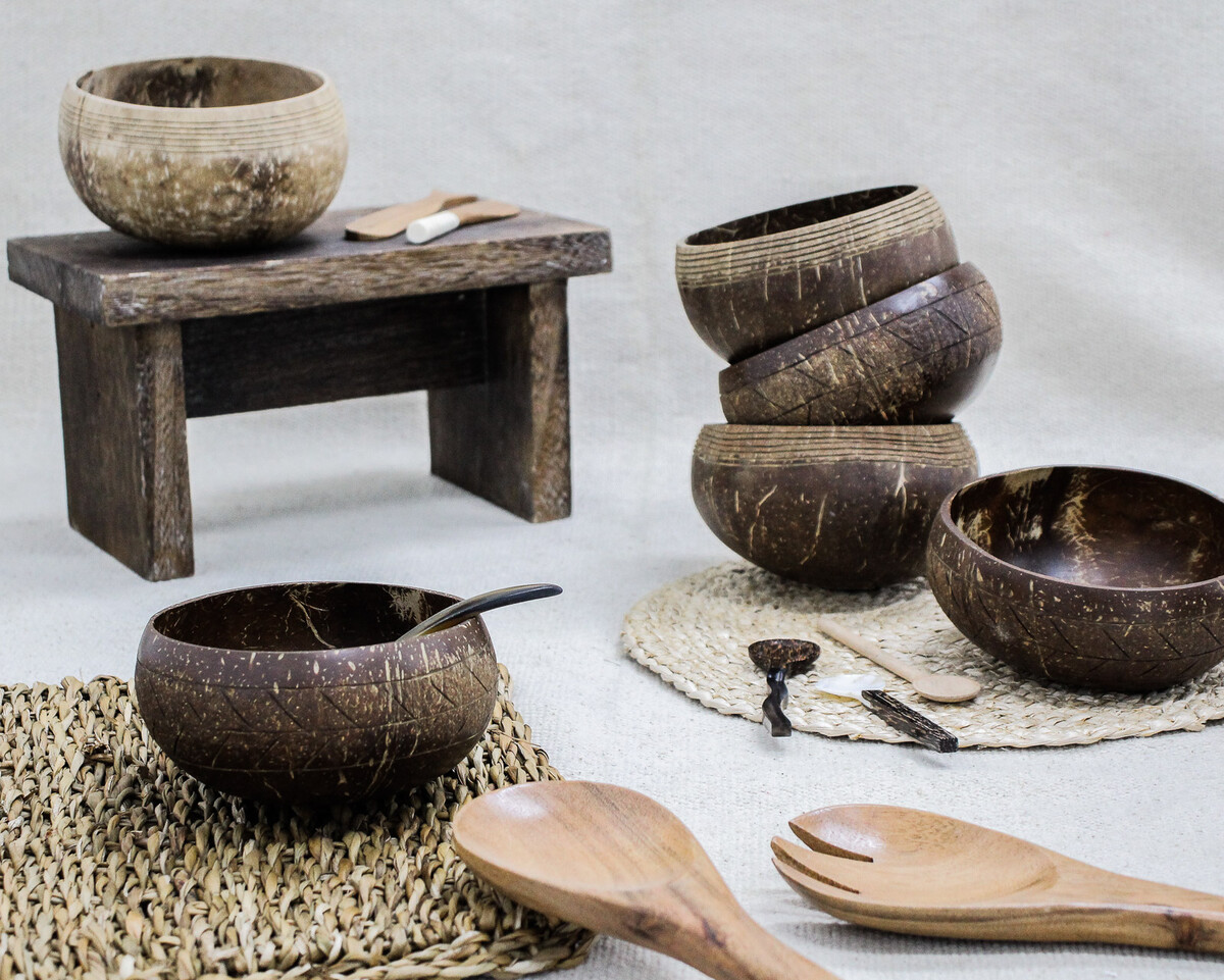 The carving on these bowls really is unique on every single item - and some have more contrast than others. That’s the joy of natural materials and hand-crafting though, right? Each one is genuinely unique, with beautiful texture and character that only gets better with age. 13x13x6cm approx - but expect lots of variation in size, colour, design and finish. The wonderful thing about this coconut bowl is that it really does go anywhere and fits into so many different aesthetics - from Scandi minimalism to rustic global style or even modern monochrome looks. This is the sort of functional decor your customers will use all over the house or office, blending beautifully with their existing pieces while also feeling like something special.