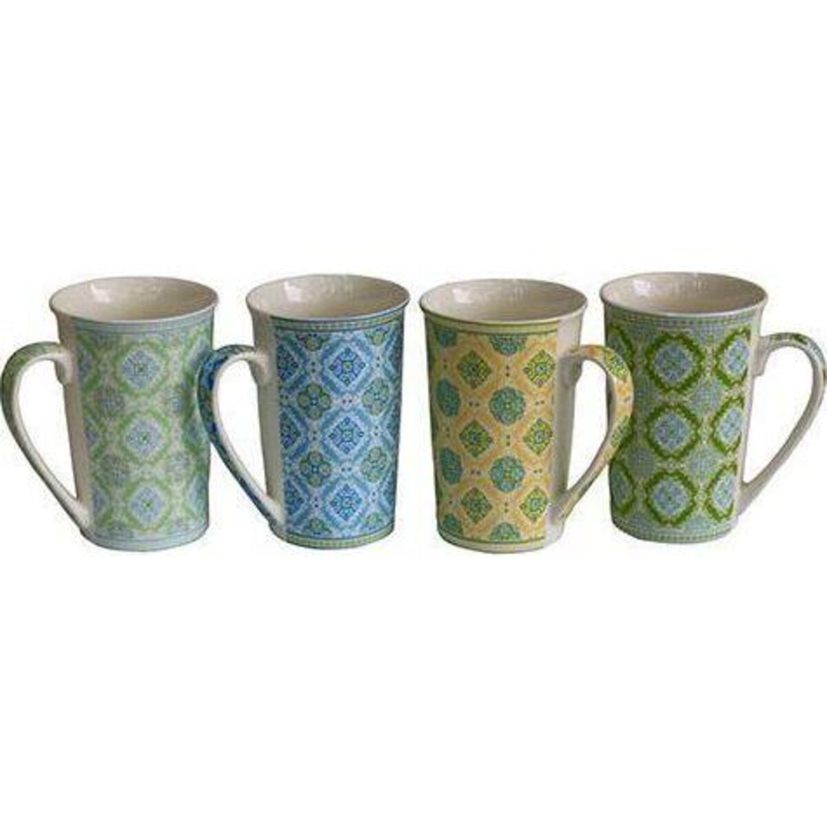 Sure enough there are always those moments which we look forward to during any hectic day-your coffee break-why not make that a more colour-filled experience with this et of gorgeous printed ceramic mugs that come in the most pleasing palette of pastel prints. The smooth fine quality ceramic is high quality the finish is a testimony the manner in which high quality food grade standards have bene maintained and the fact that despite much usage its print and colour will remain as bright and cheer filled as ever. This mug set has four pieces each complimenting the other in its design and when served together it will make a lovely splash of colour and design. The high-grade ceramic will ensure that your coffee stays hot for longer. Add a tiny spot of style to your coffee table and make this your new coffee drinking partner. The mugs are 14 cm tall with wide mouth is and slightly narrower bases. The backdrop in white helps highlight the gorgeous pattern on the mugs.