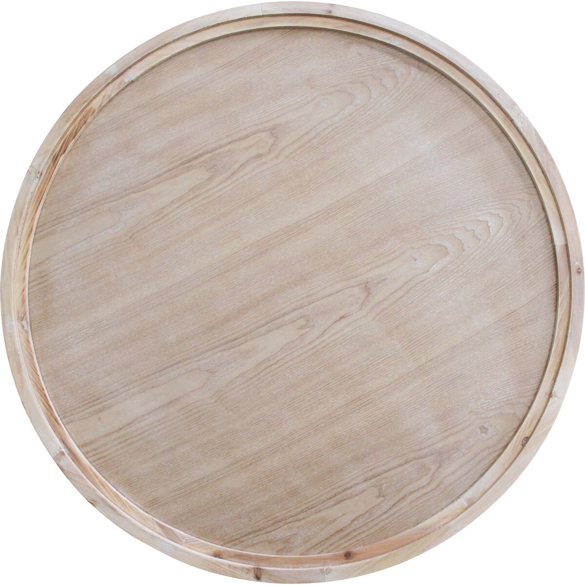 The dramatic simplicity of the round coffee table comes from minimalistic use of details yet it comes packed with all those features that help fit it in perfectly with your décor. Made from solid fir pine and MDF, the coffee table is 80 cm in diameter, easy to tuck into your living room without creating a jostling for space which usually is the case with furniture inclusions. The table top has a wood veneer, the wash of white is subtle and builds in the shabby chic element. The table top has a raised rim adding a whimsical note to the design. Its 47 cm height and width of 80 cm rests on four solid wooden legs. The smooth table top comes with knots and variations in colour but a very clear visibility of the wood grains. Will add a touch of variation in the space with its shape, colour and size.
