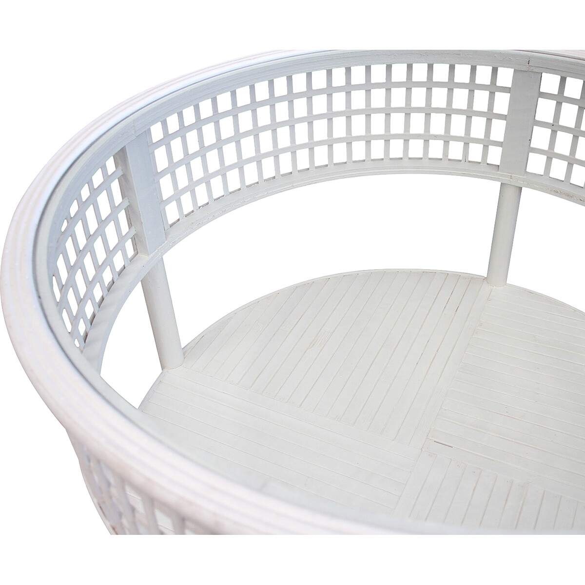 The height of the table is all of 50 cm while its round top is all of 80 cm in dimeter giving it that statuesque yet well rounded feel that helps blend in its influence in the most elegant of ways. The washed in white look helps make it that perfect little coffee niche where you would love to sink in and forget for just that while - the troubles of the world. The structure of the table and its little shelf on the base adds to its utility and usability, stands on four legs that are slightly raised making it easy to shift and clean underneath. Gives a chic urban feel to a room with its neat and classic kind of look. Sized for those spaces that need a further definition or the ones that need that all important table top spaces.