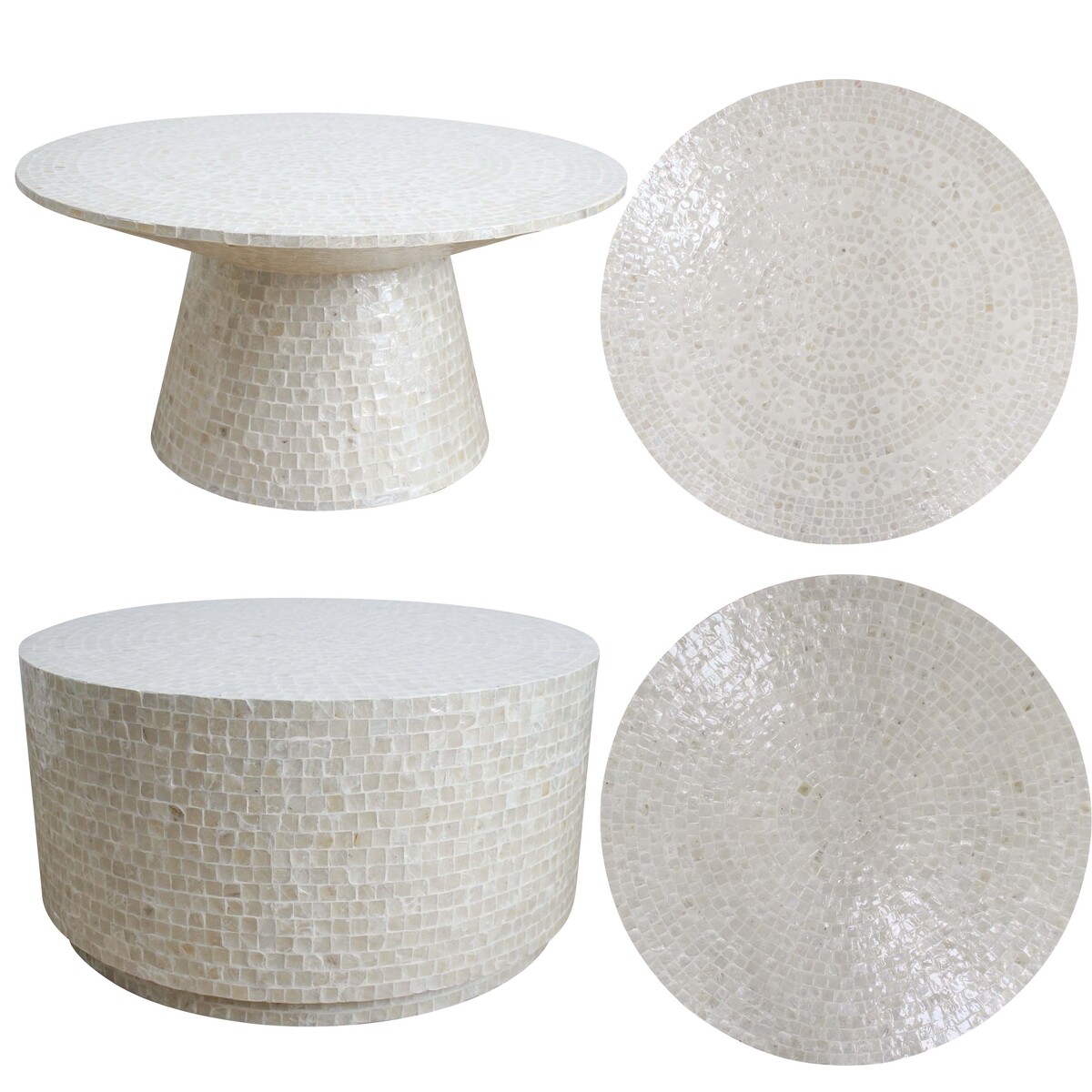 Introducing the enchanting #Coffee Table S/2, a pair of beautifully crafted tables destined to become the centerpiece of any room. Designed with both aesthetics and versatility in mind, each table measures 80x40cm, the perfect size for complementing your living space without overwhelming it. Made from the luminous Capiz shells and sturdy MDF, these tables exude an iridescent charm that captures the eye and beautifies your home.