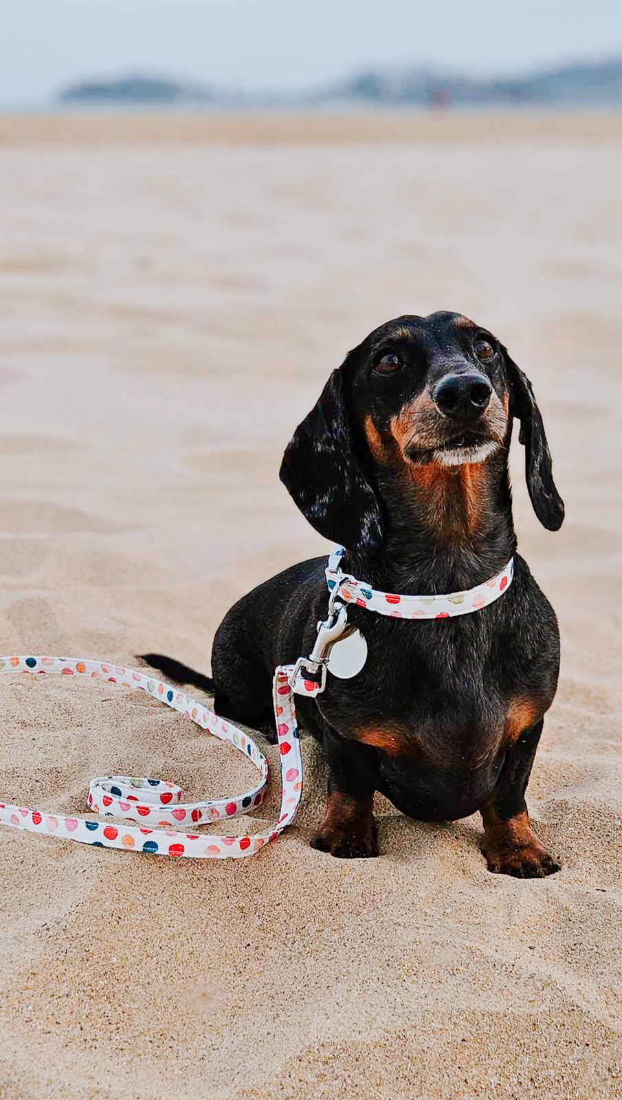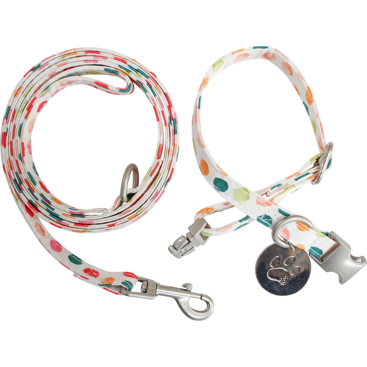 Transform the everyday walk with your furry friend into a statement of style with the Spottie Collar & Lead Set. Expertly crafted for the trend-conscious pet owner, this delightful set excels in both form and function. The charming spotty design weaves splashes of vibrant colours onto a backdrop of durable polyester, creating an eye-catching accessory that’s sure to turn heads at the park. The tasteful pattern adds a touch of whimsy to any home or office environment, serving as a chic decorative element when not in use. Pet lovers will appreciate how this set not only enhances the appeal of their space but also expresses their pup's personality. Measuring 1.5cm in width with an adjustable collar spanning 26-42cm and a lead length of 150cm, it offers a comfortable fit for small-sized dogs while providing ample freedom on walks. The robust metal hardware ensures safety and longevity, standing up to the excitement of daily outings. Ideal for homeware and giftware retailers looking to brighten their inventory with a multi-purpose item, this Collar & Lead Set will draw in pet parents who value design and utility. Encourage your customers to indulge in this vibrant Spottie duo; it’s more than just a necessity - it’s a small delight in the art of living with pets.